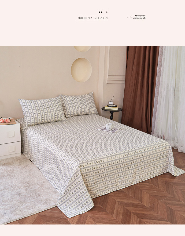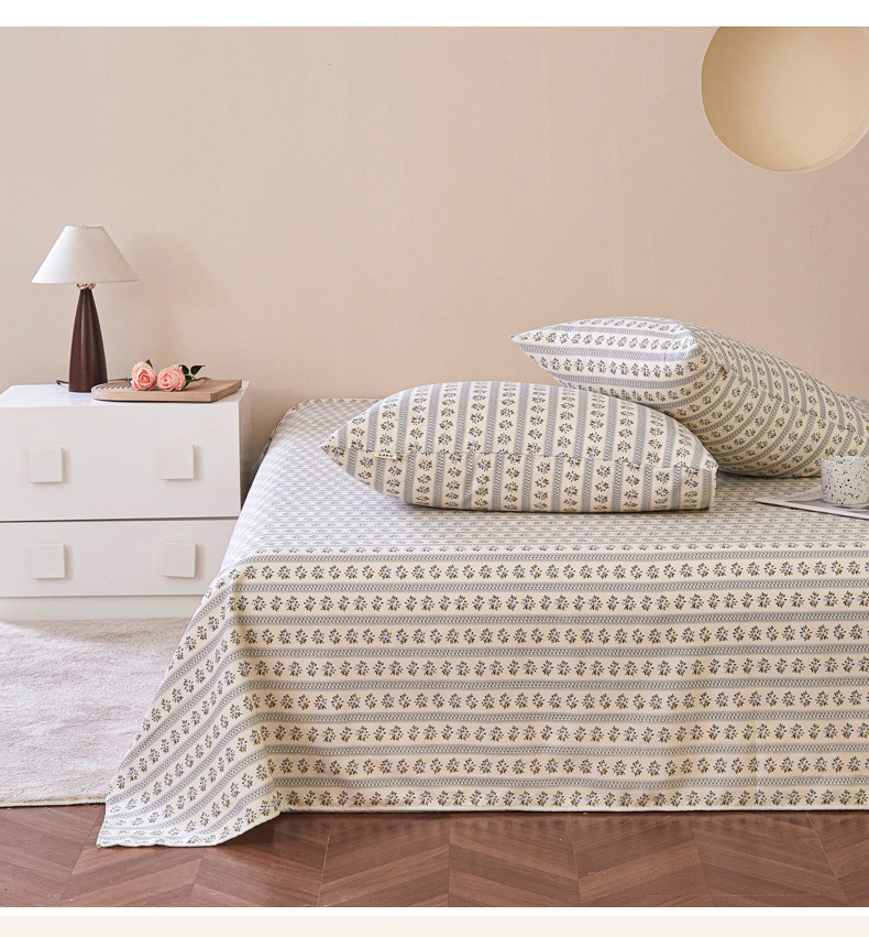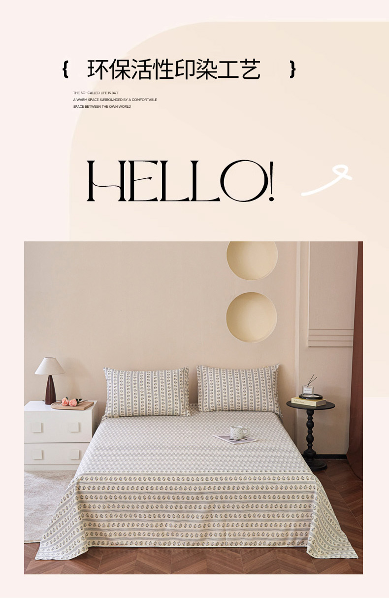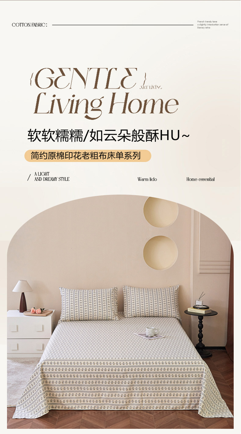 绒艺席业 2025新款简约原棉印花老粗布床单 陌微
