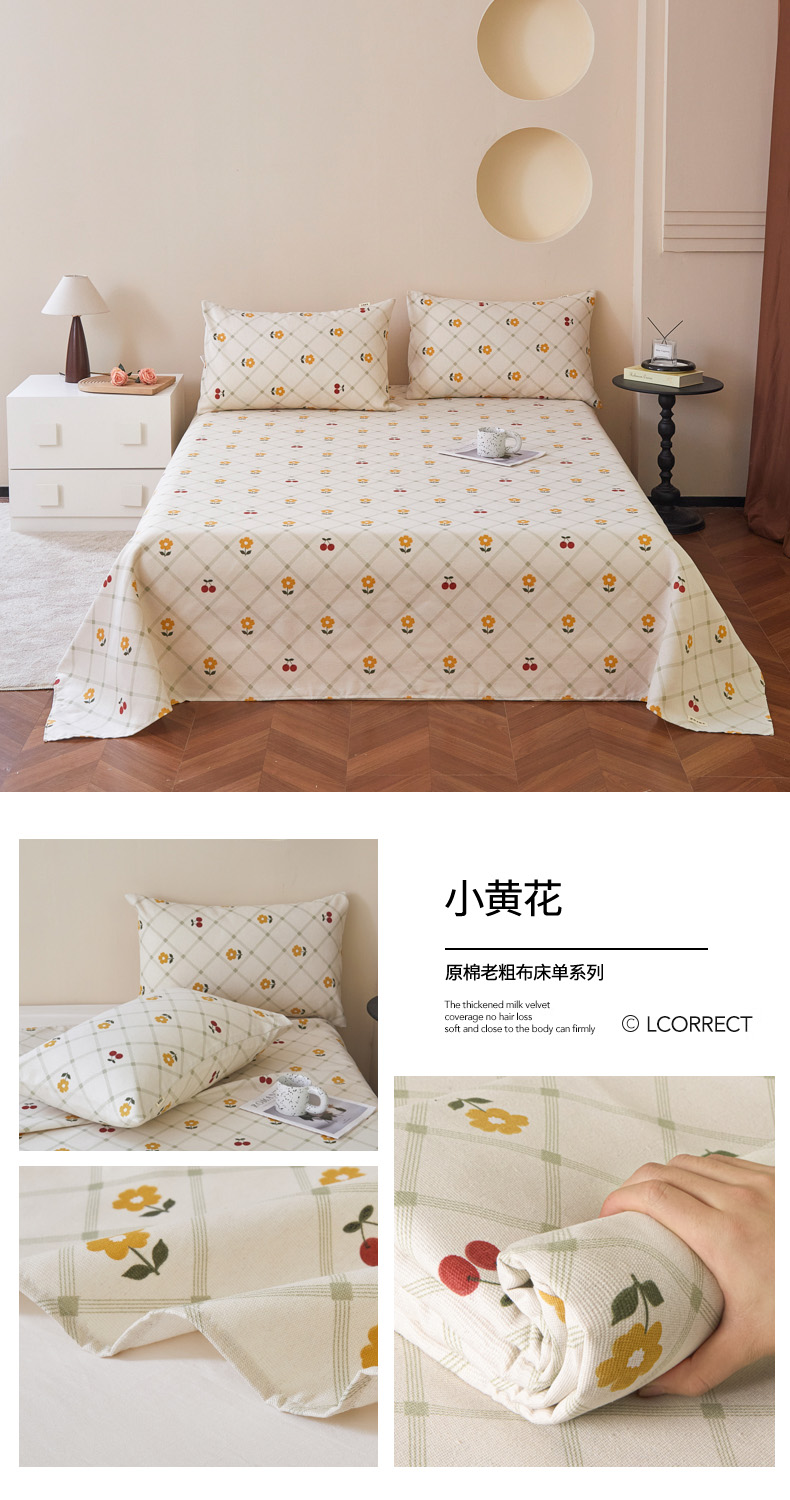 • 91家纺网 家纺一手货源 找家纺 绒艺席业 2025新款简约原棉印花老粗布床单 陌微