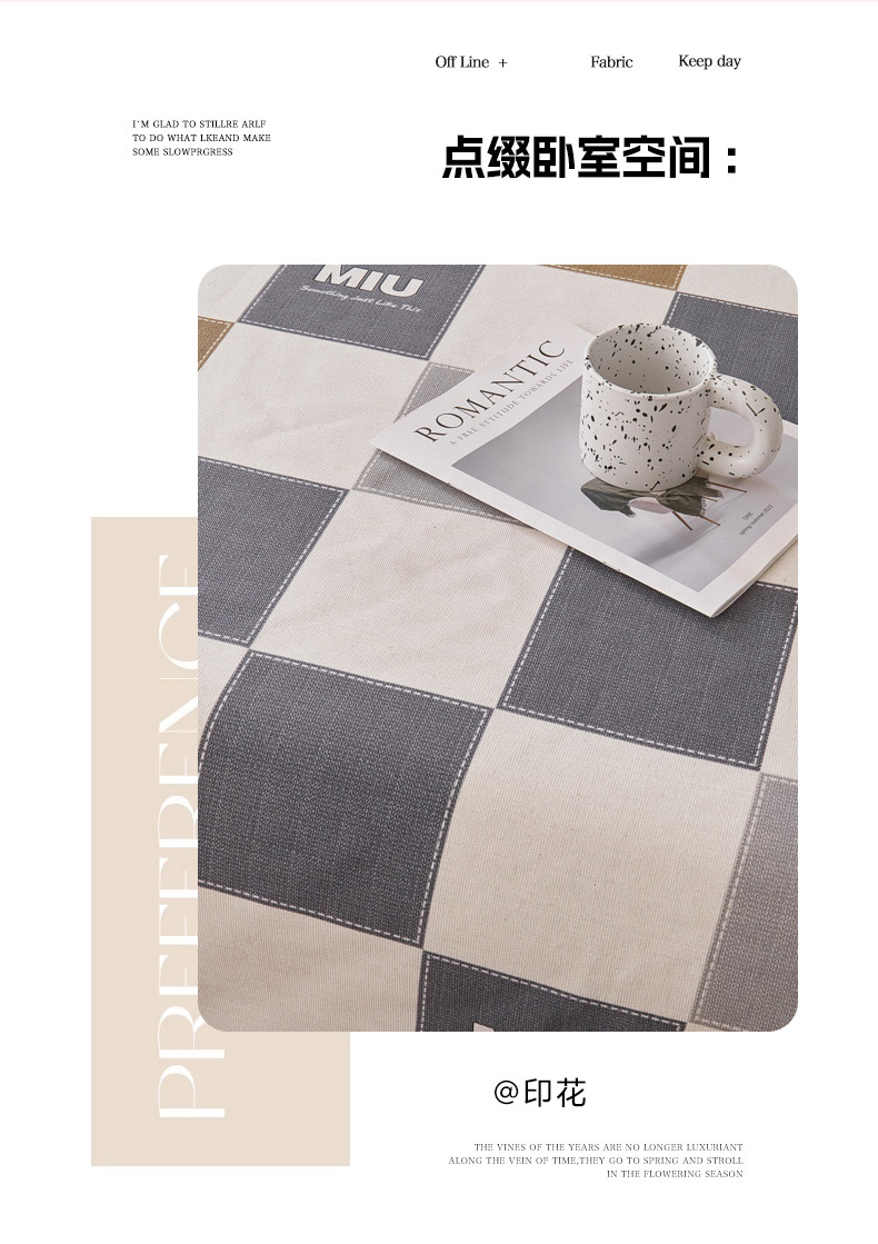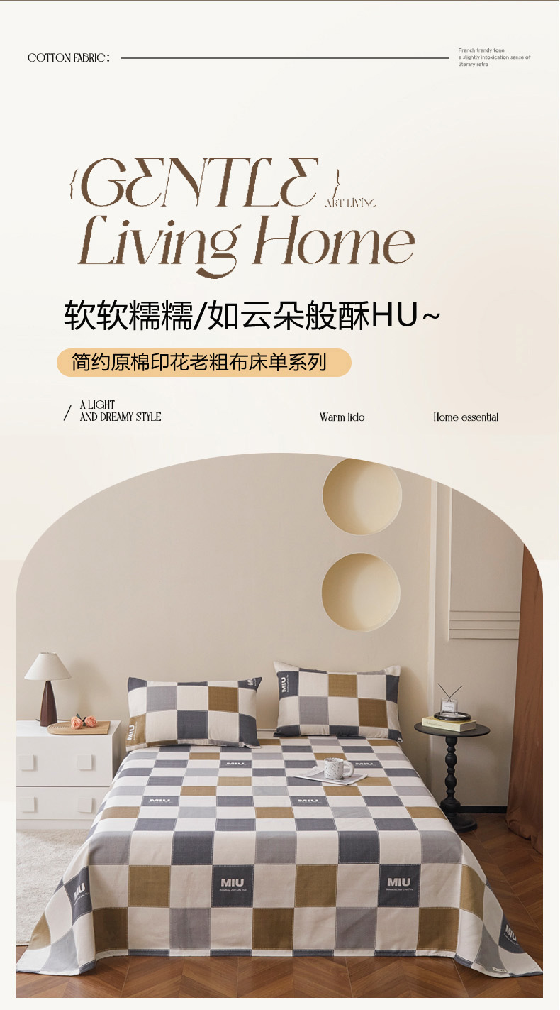 • 91家纺网 家纺一手货源 找家纺 绒艺席业 2025新款简约原棉印花老粗布床单 miu蓝白格