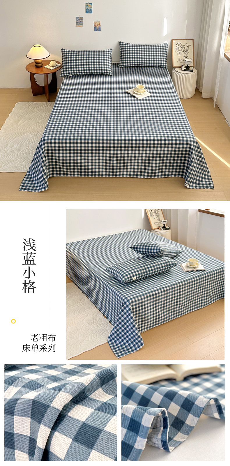 绒艺席业 2025新款简约原棉印花老粗布床单 miu蓝白格