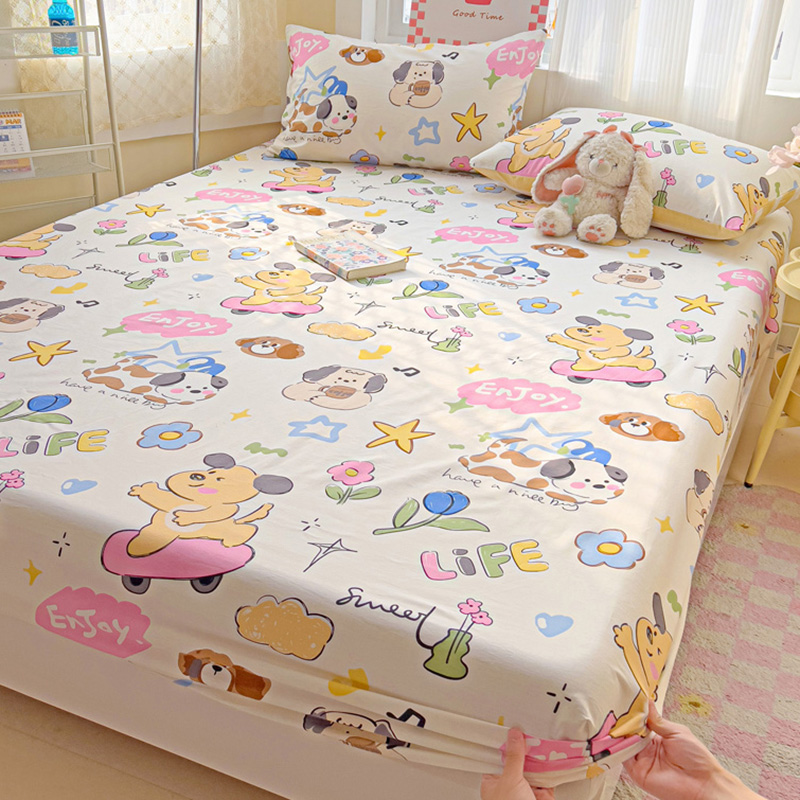 棉生活家纺 2025新款ins全棉小清新系列单品床笠 治愈萌宠