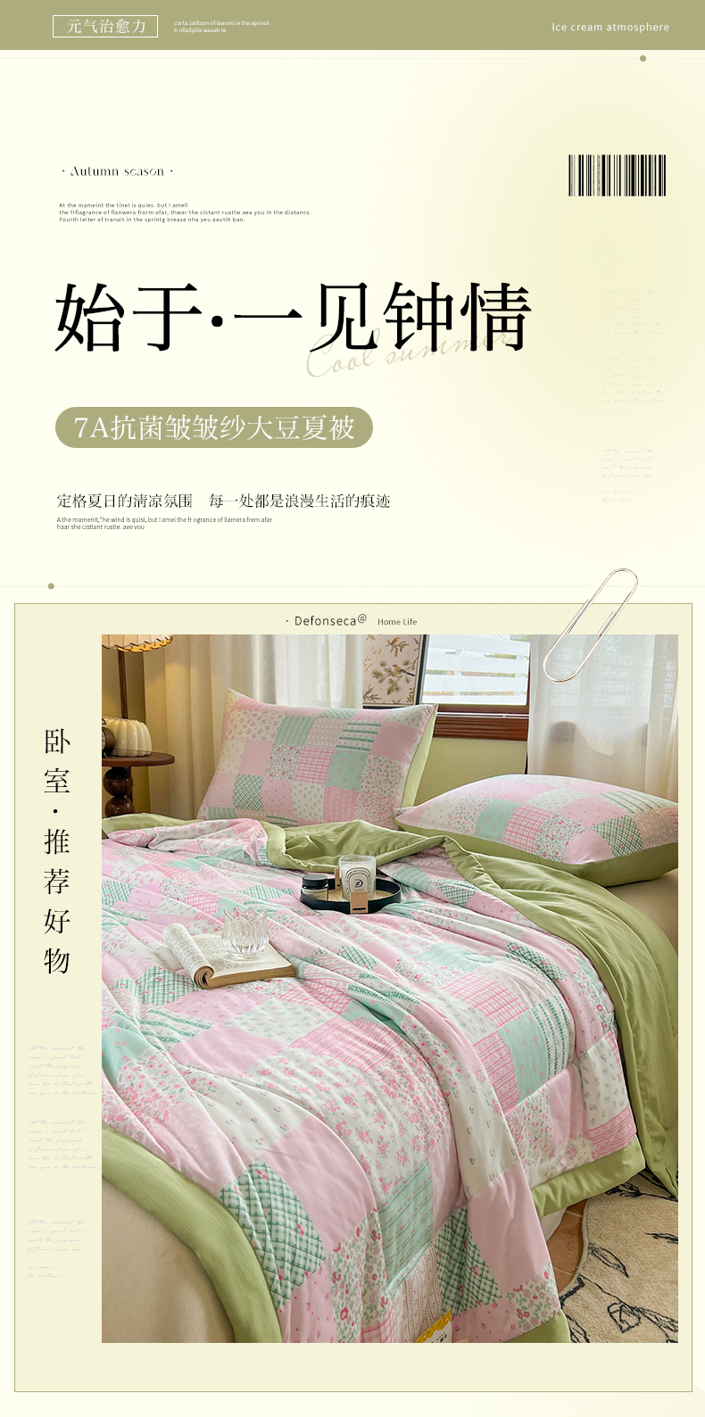 商品名称:欢乐季 2025新款7A抗菌双层皱皱纱大豆夏被夏凉被空调被 (可以开发票—专票8个点) 百福粉
