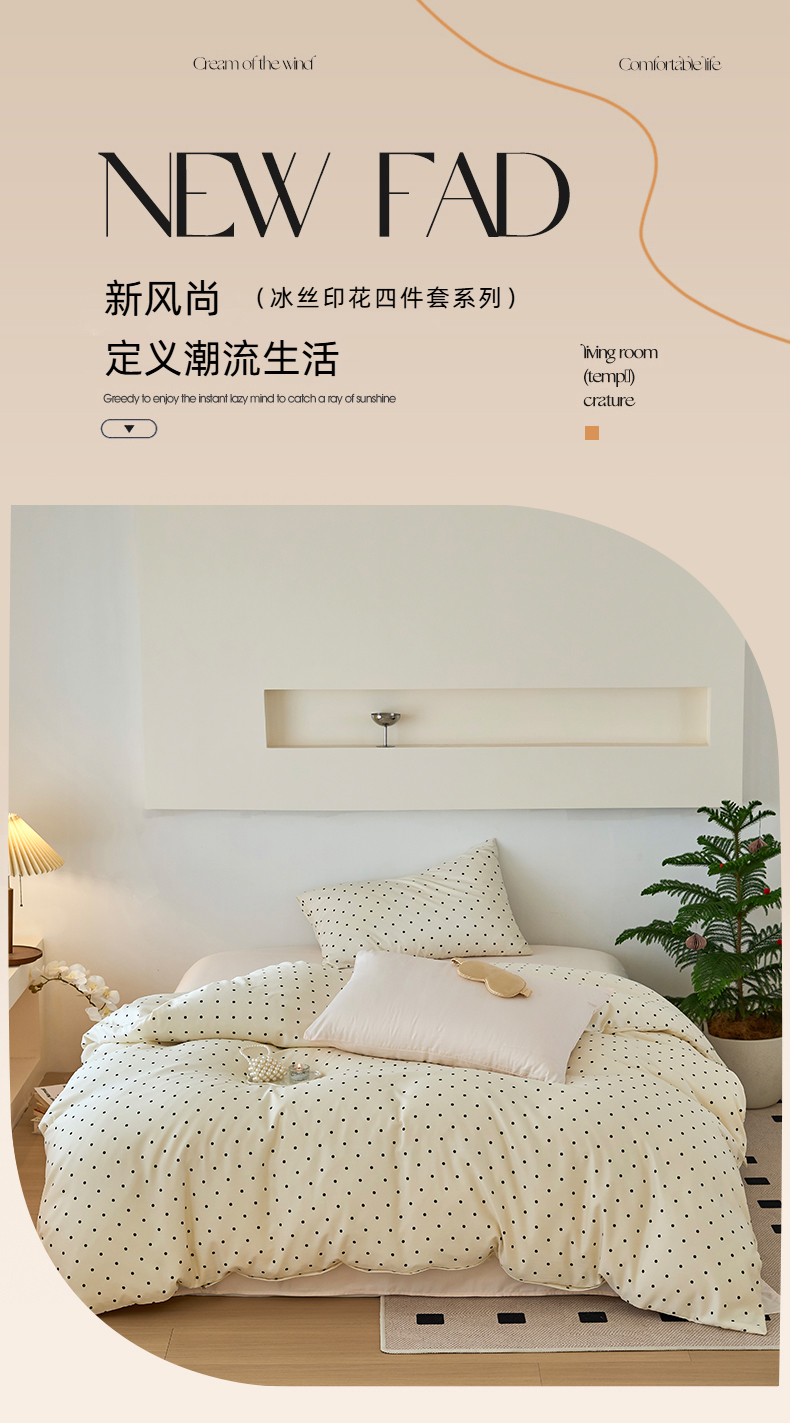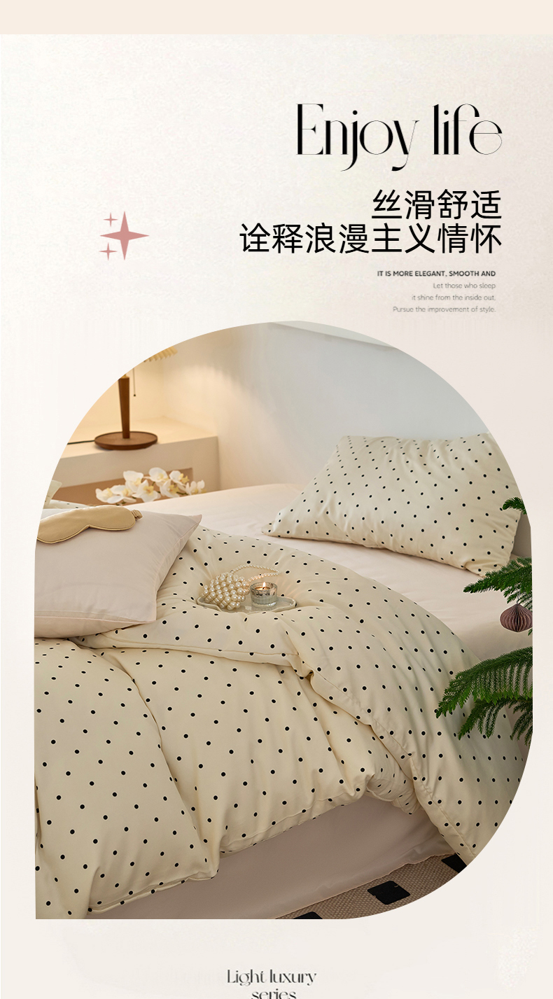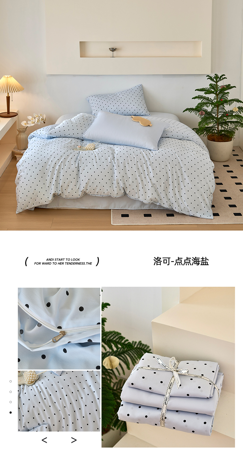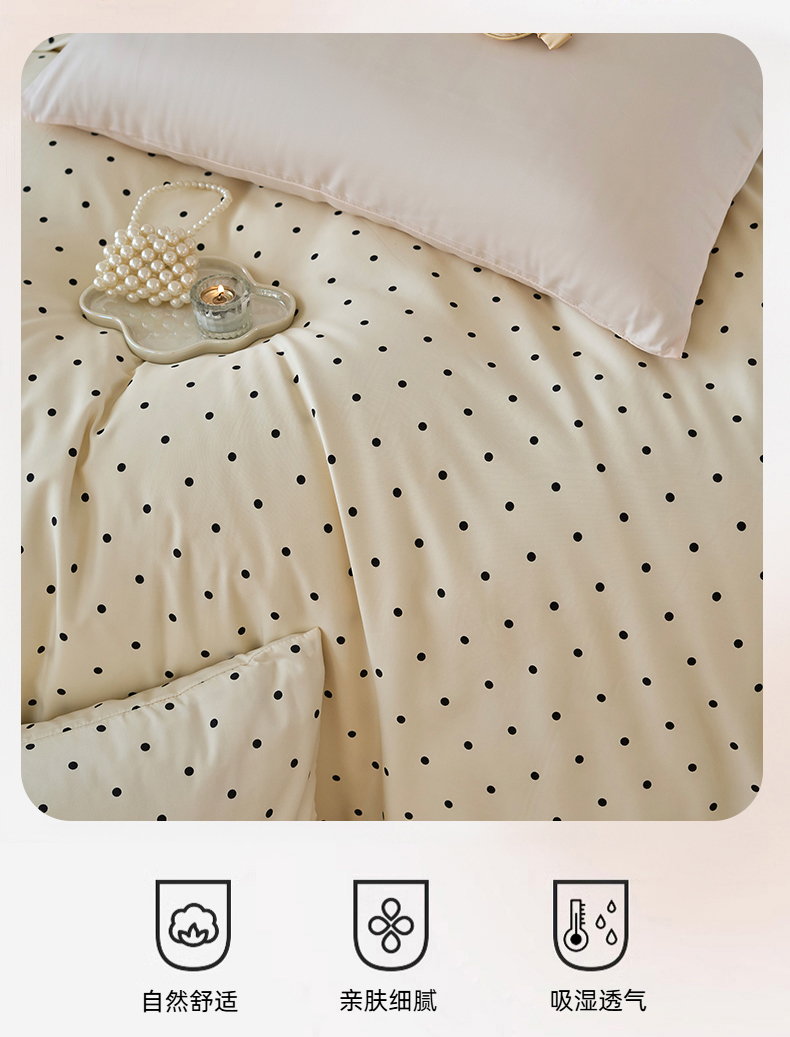 当前位置: 91家纺网 > 商品网购 > 床品套件 > 四件套 > 其它四件套 > 凯洛奇 2025新款简约小清新波点水洗冰丝天丝四件套-风格一 洛可-点点奶黄