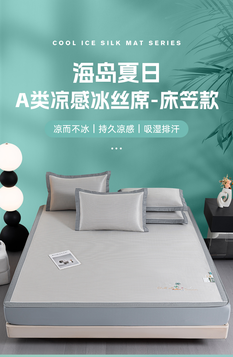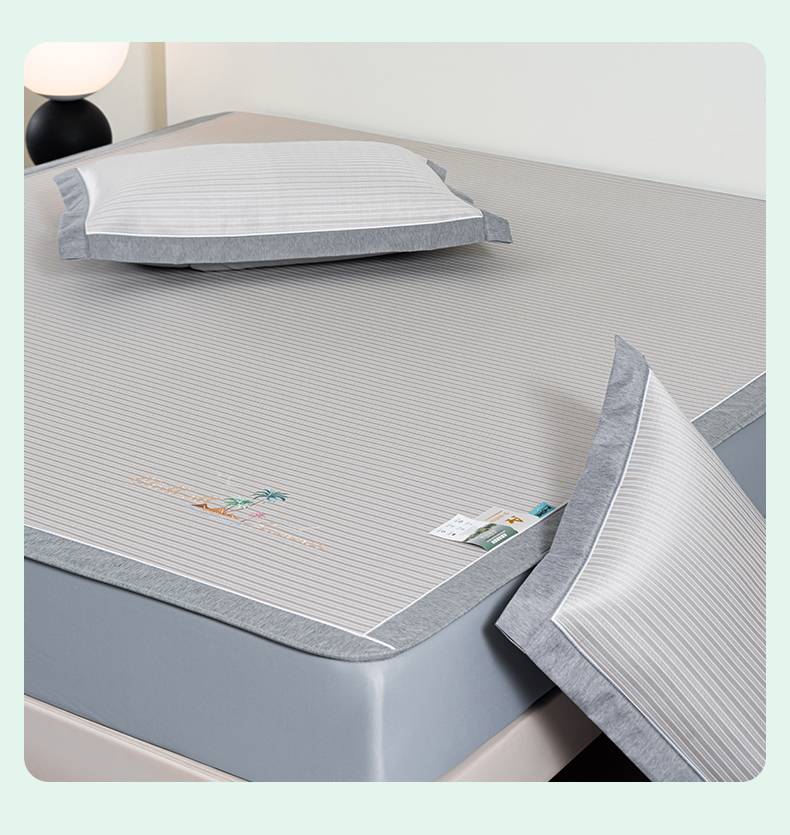 商品名称:小牛席业 2025新款海岛夏日A类凉感冰丝席(床笠款)凉席藤席冰藤席冰丝席竹席空调席草席乳胶席豆豆席三件套 香槟