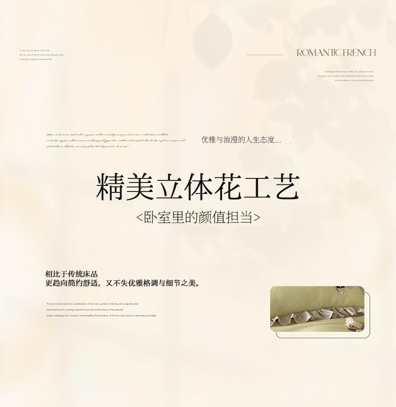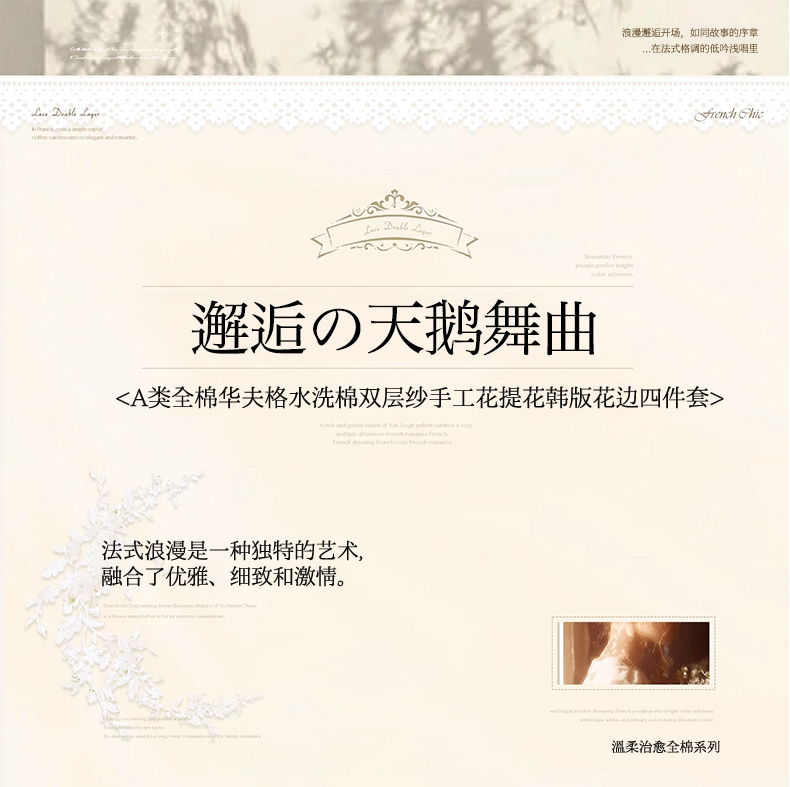 商品名称:名品优仓 2025新款全棉华夫格水洗棉双层纱手工花提花韩版花边四件套 天鹅舞曲-夜绿
