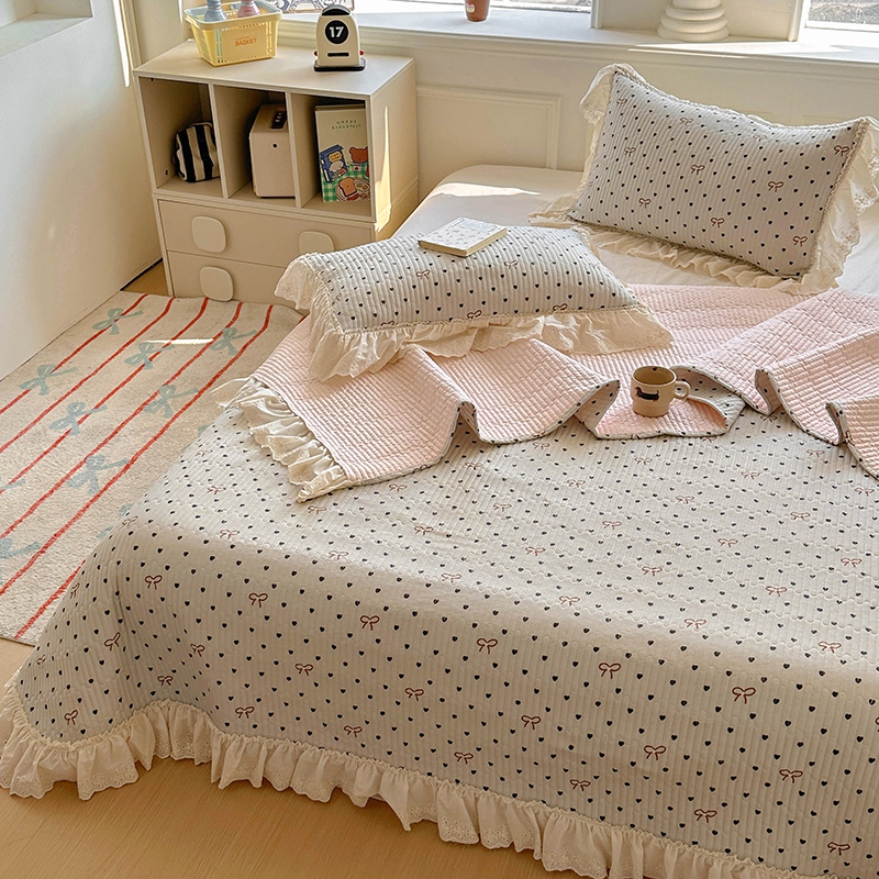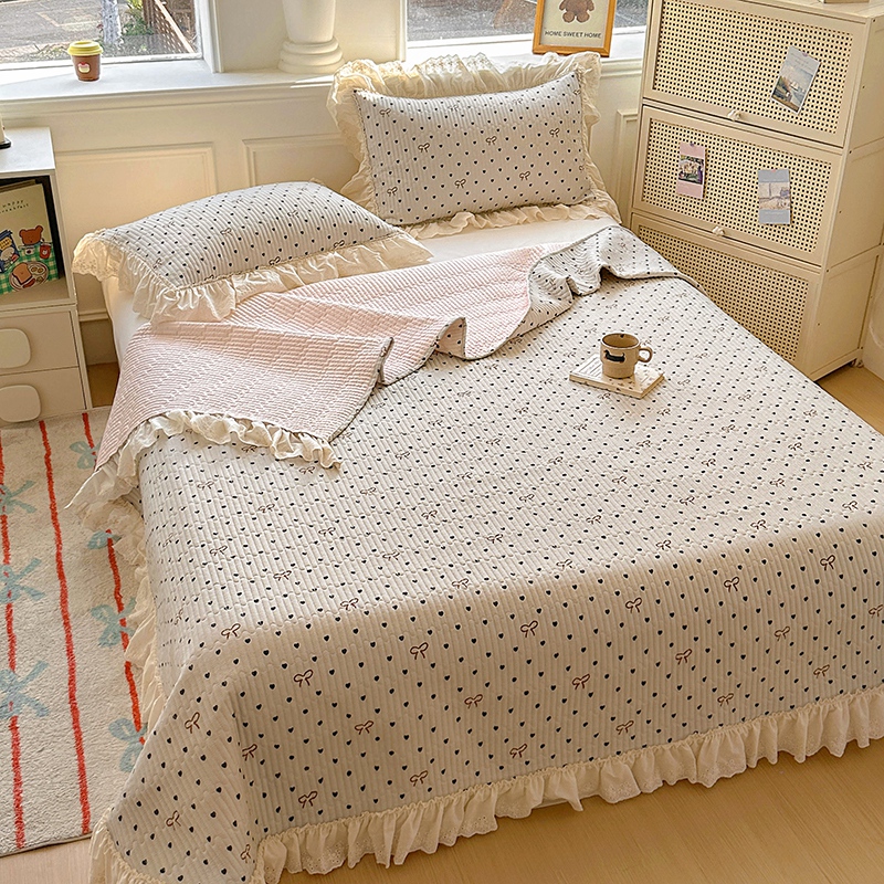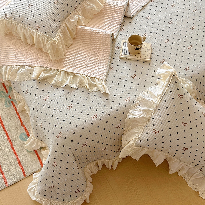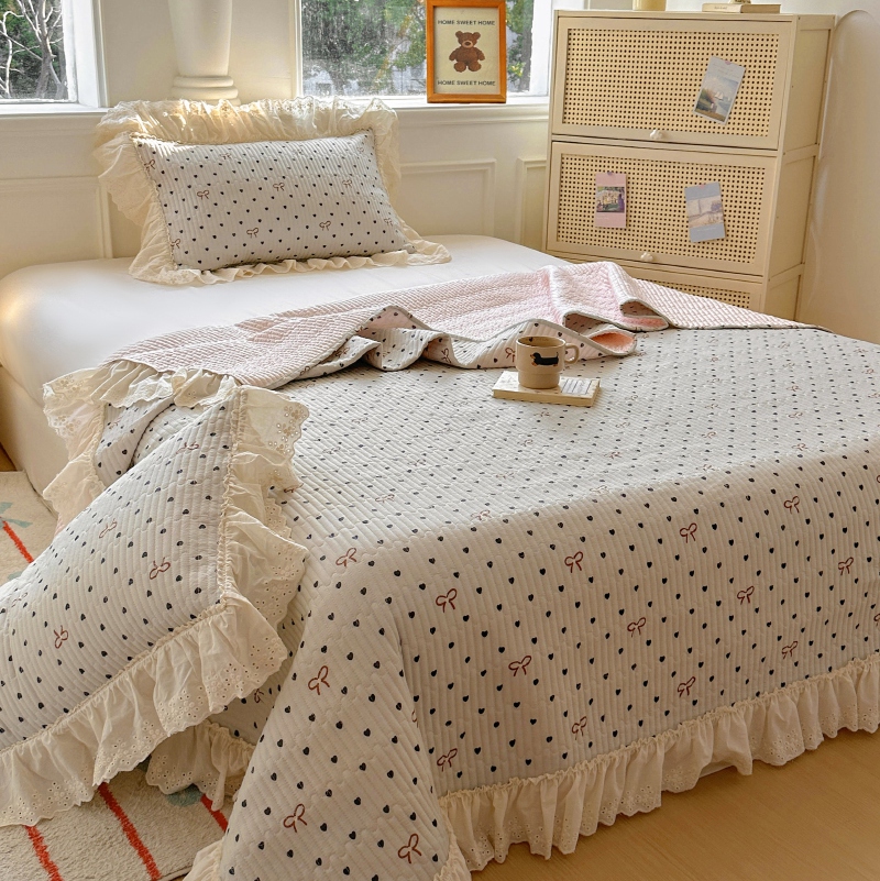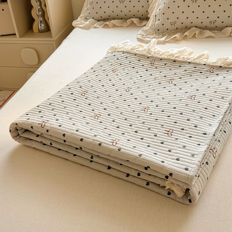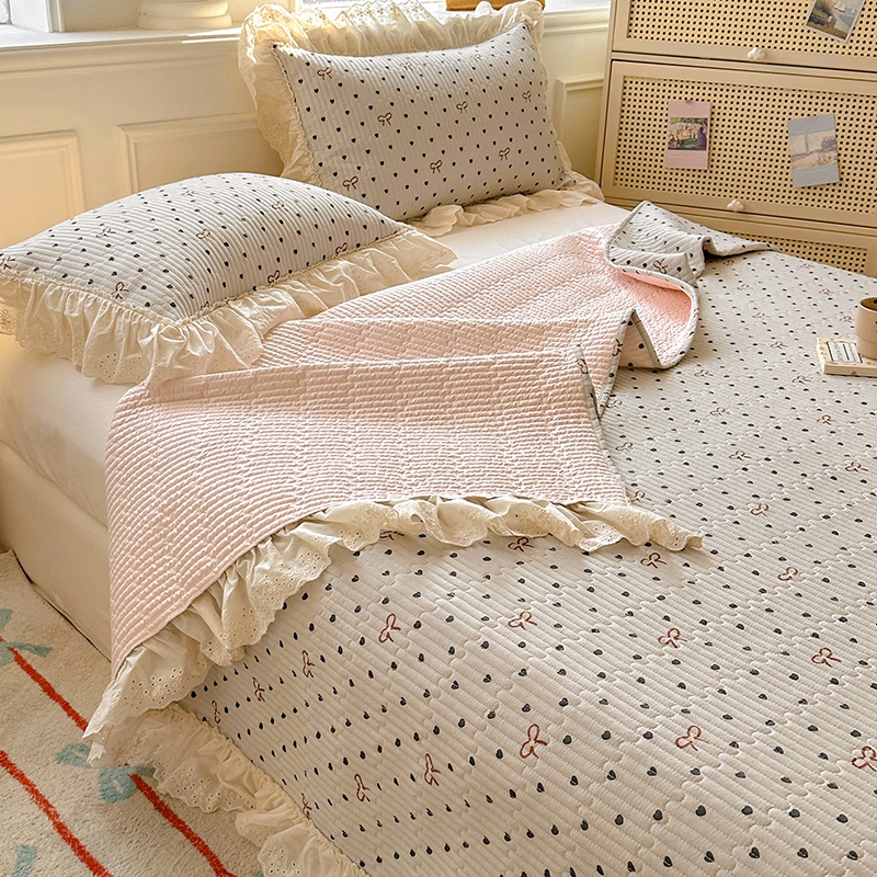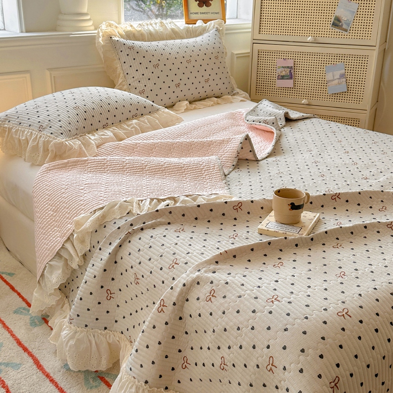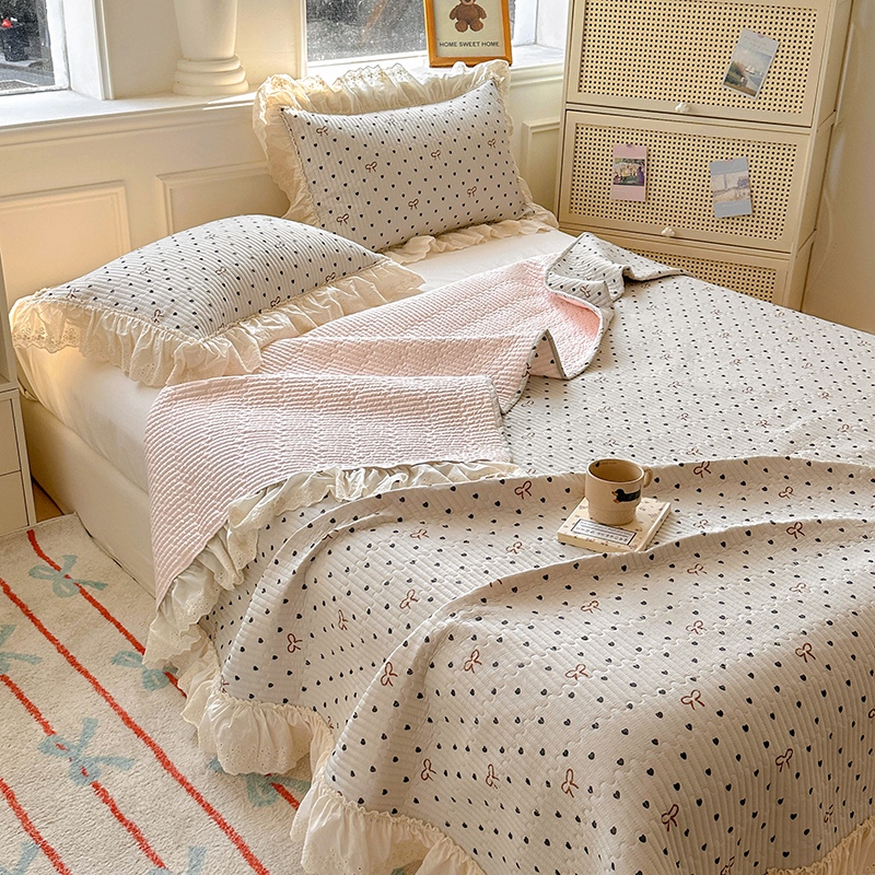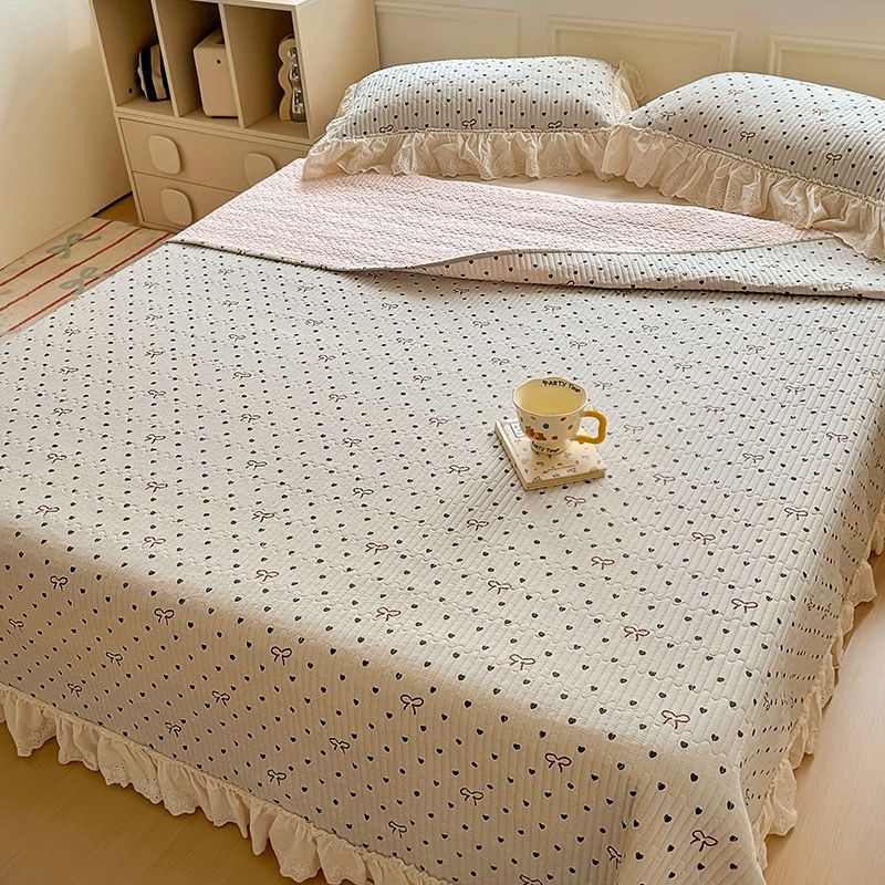 昊川 2025新款60支全棉双层纱酵素高温砂洗法式床盖 波点蝴蝶结
