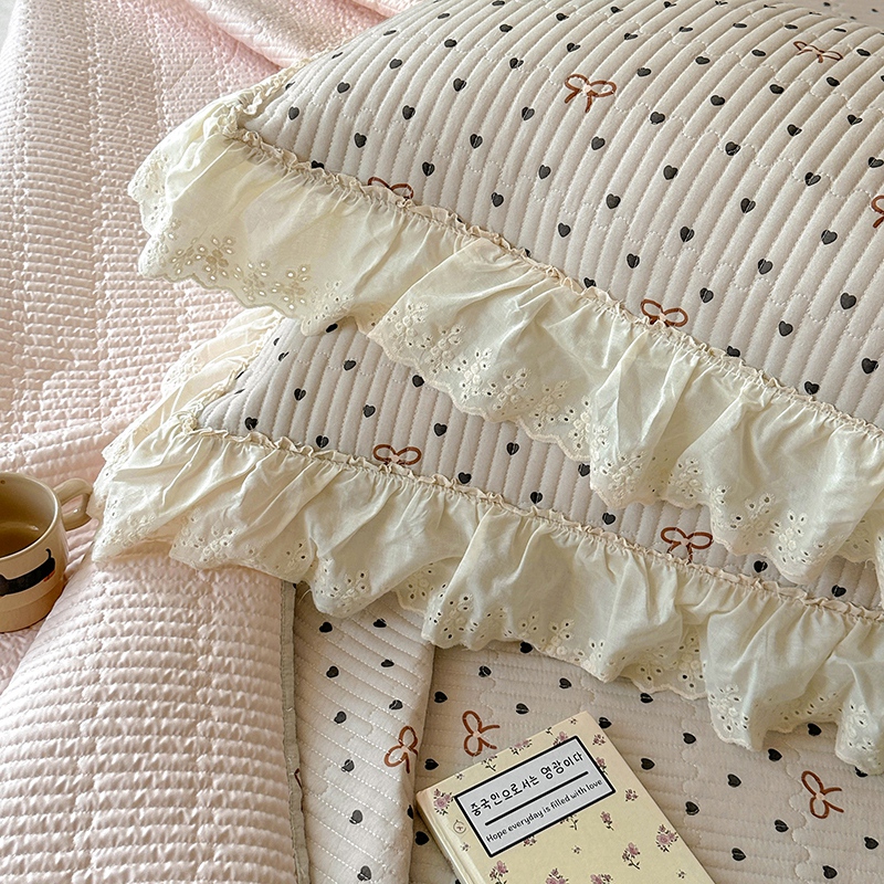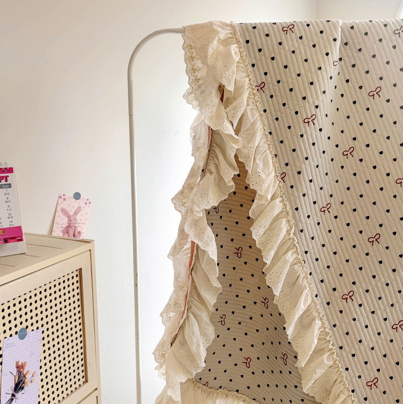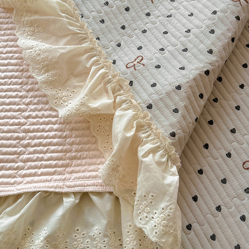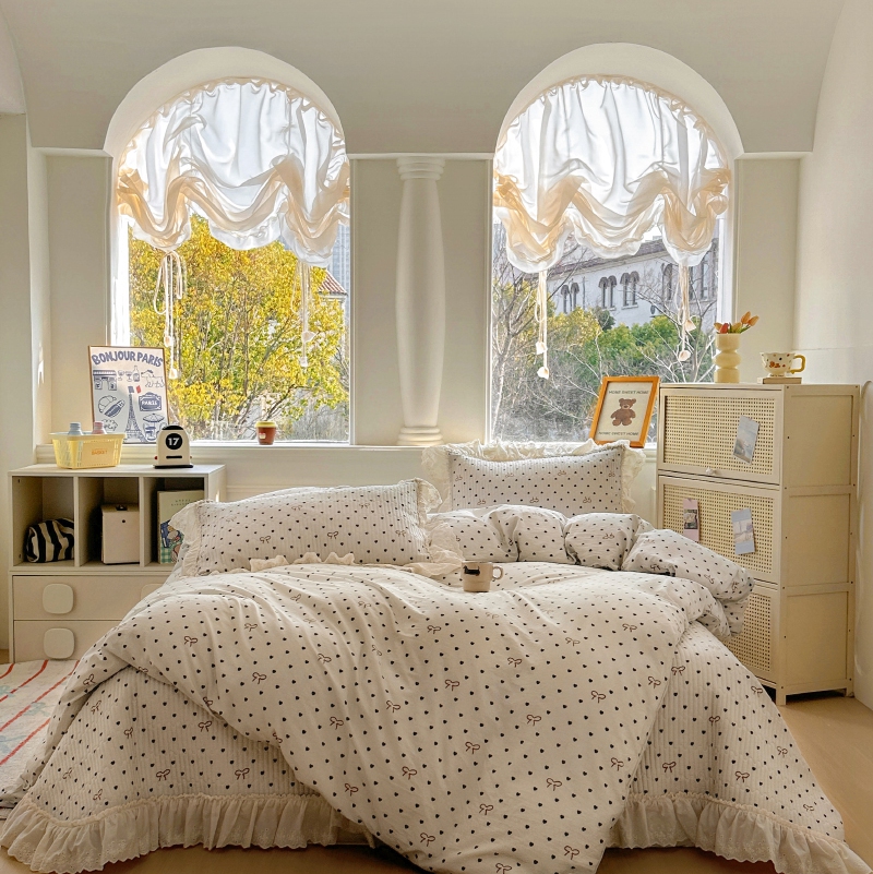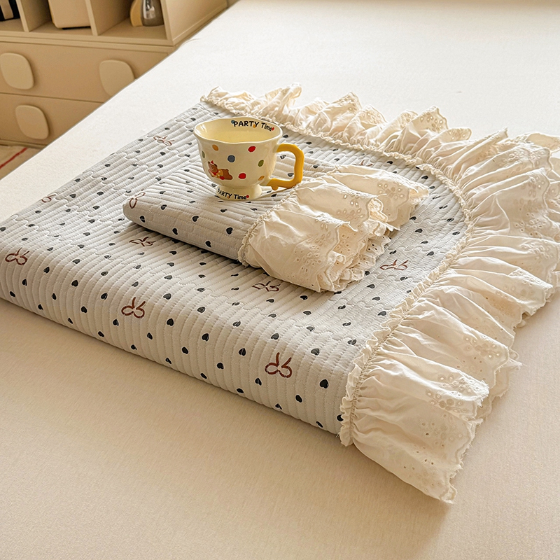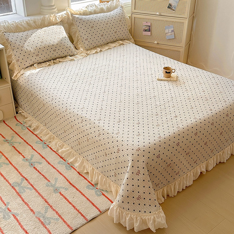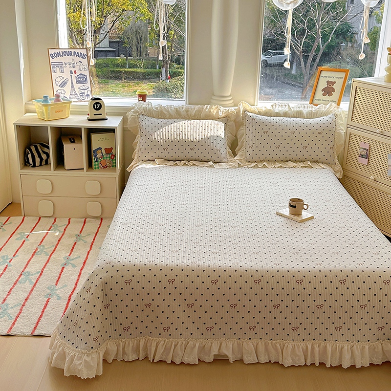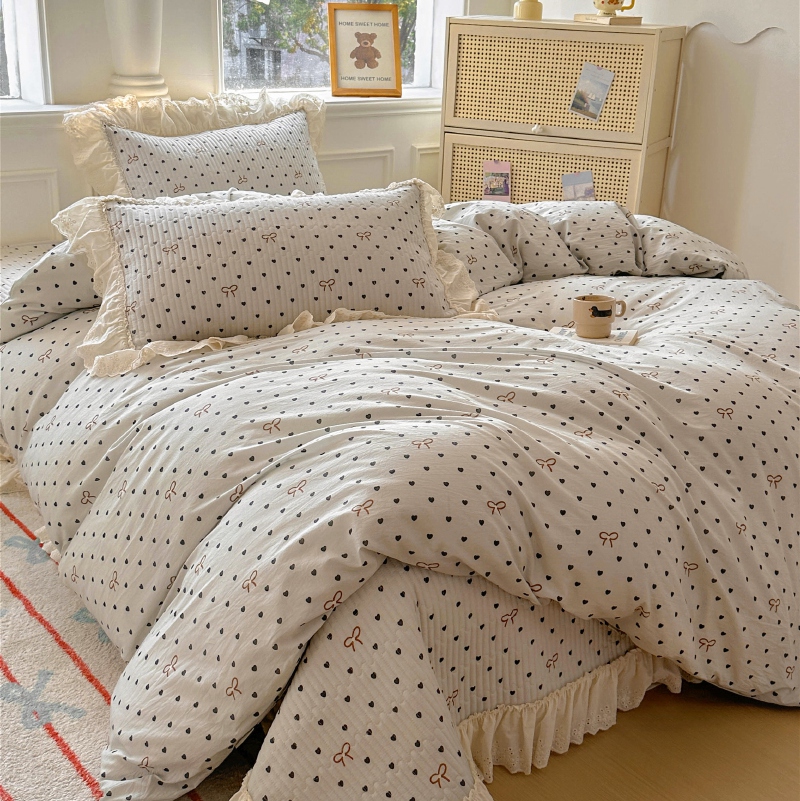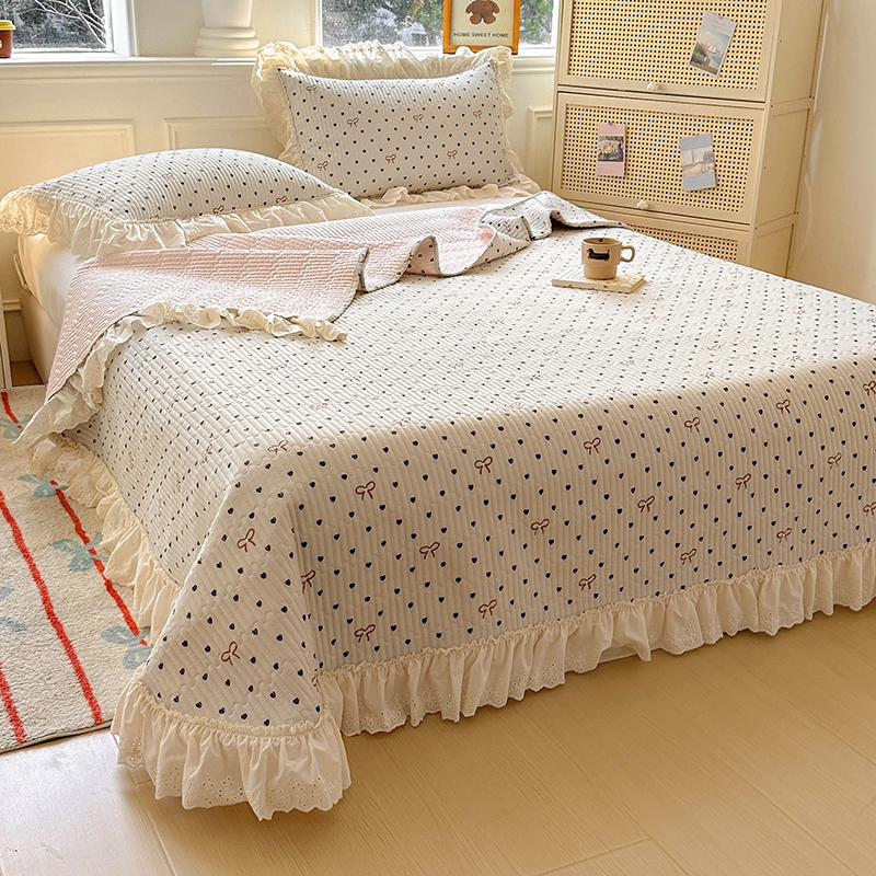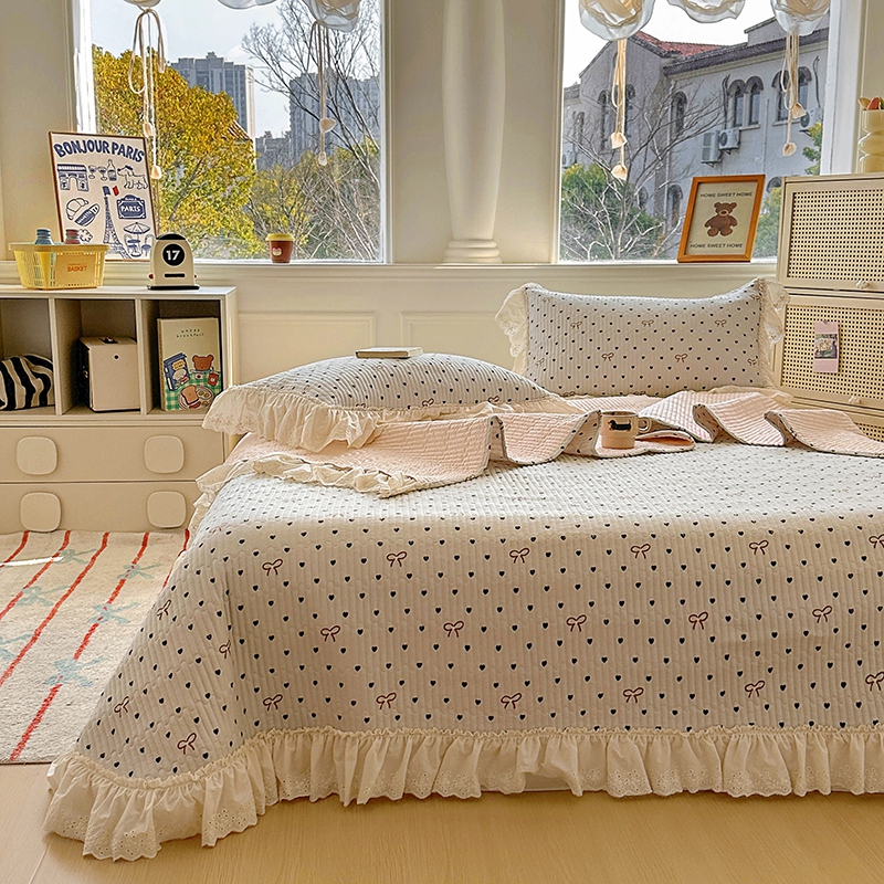 昊川 2025新款60支全棉双层纱酵素高温砂洗法式床盖 波点蝴蝶结