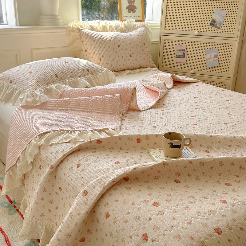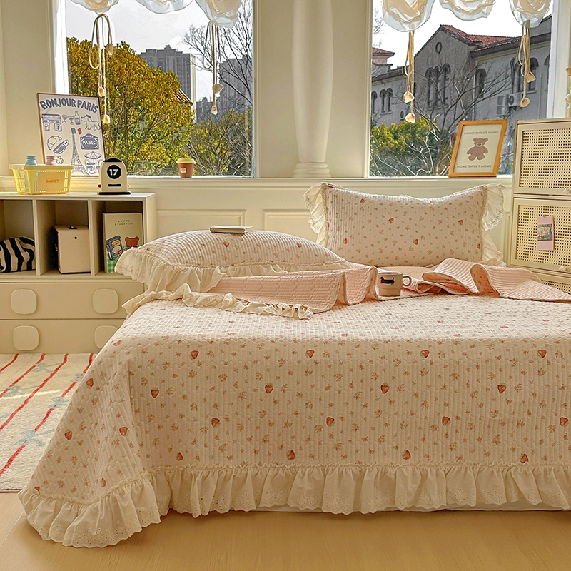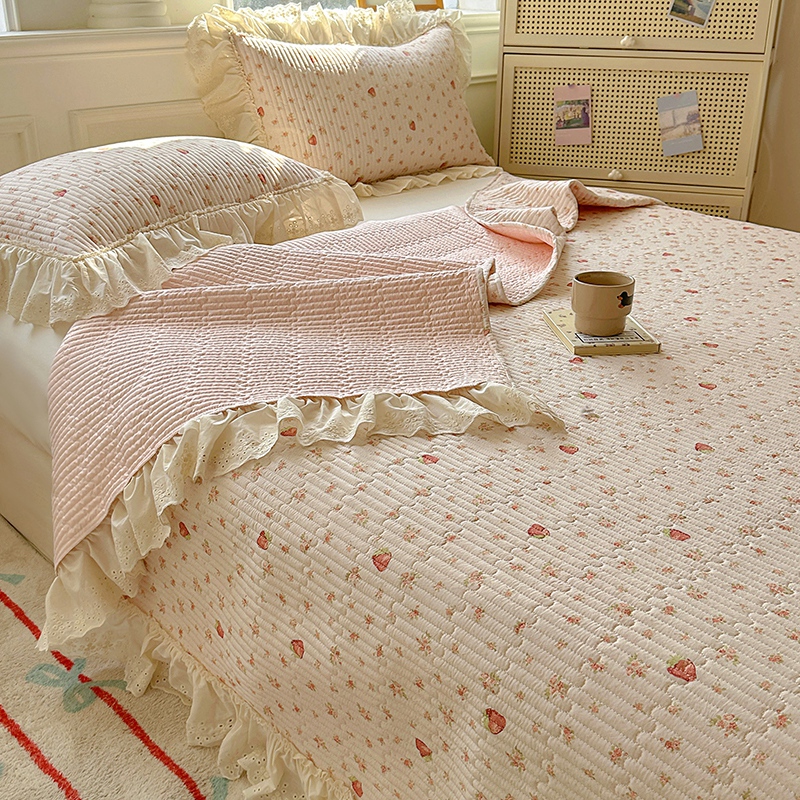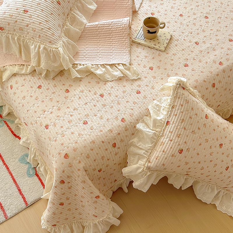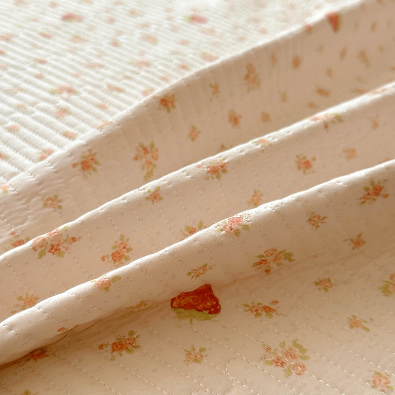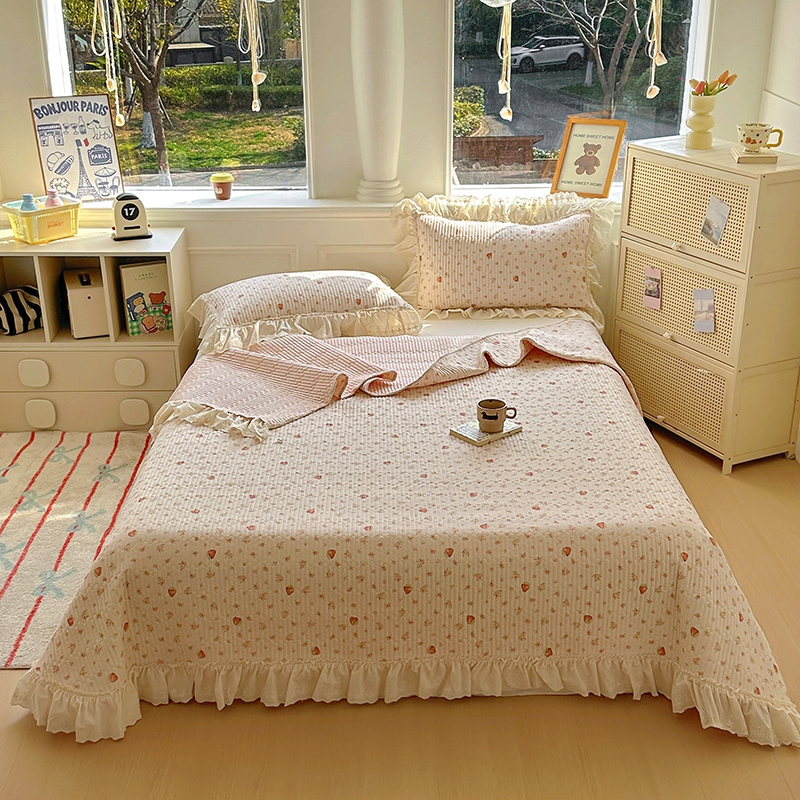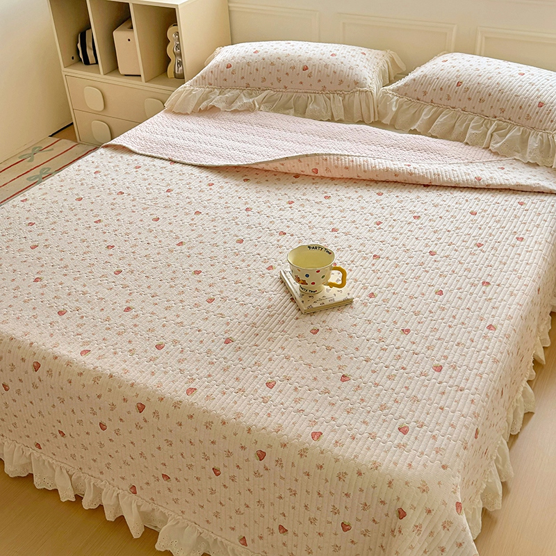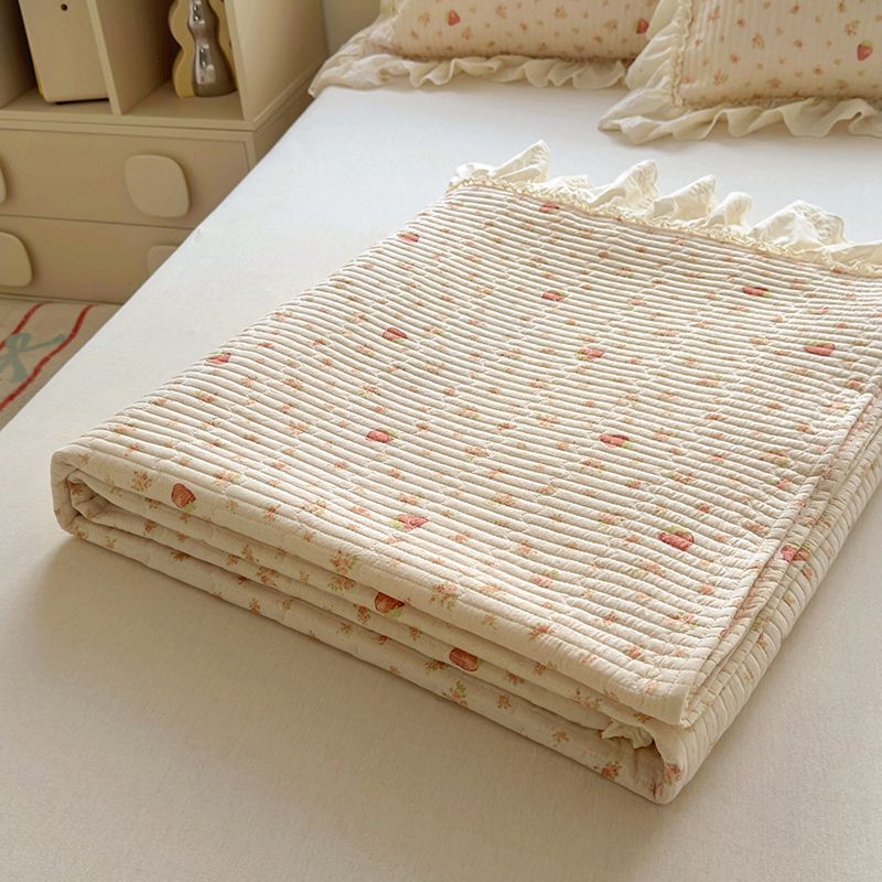 商品名称:昊川 2025新款60支全棉双层纱酵素高温砂洗法式床盖 奶油小草莓