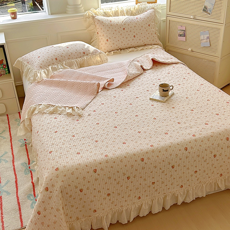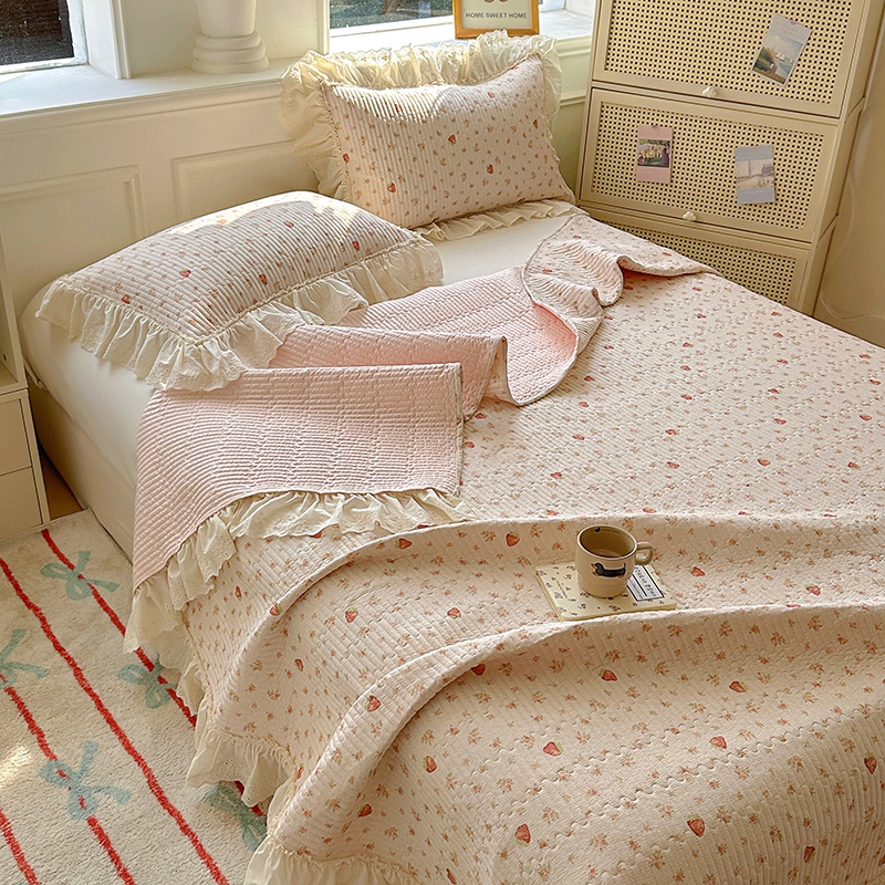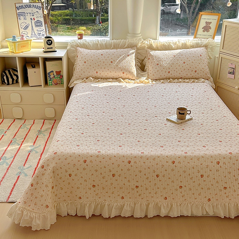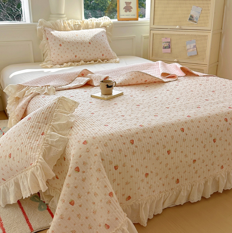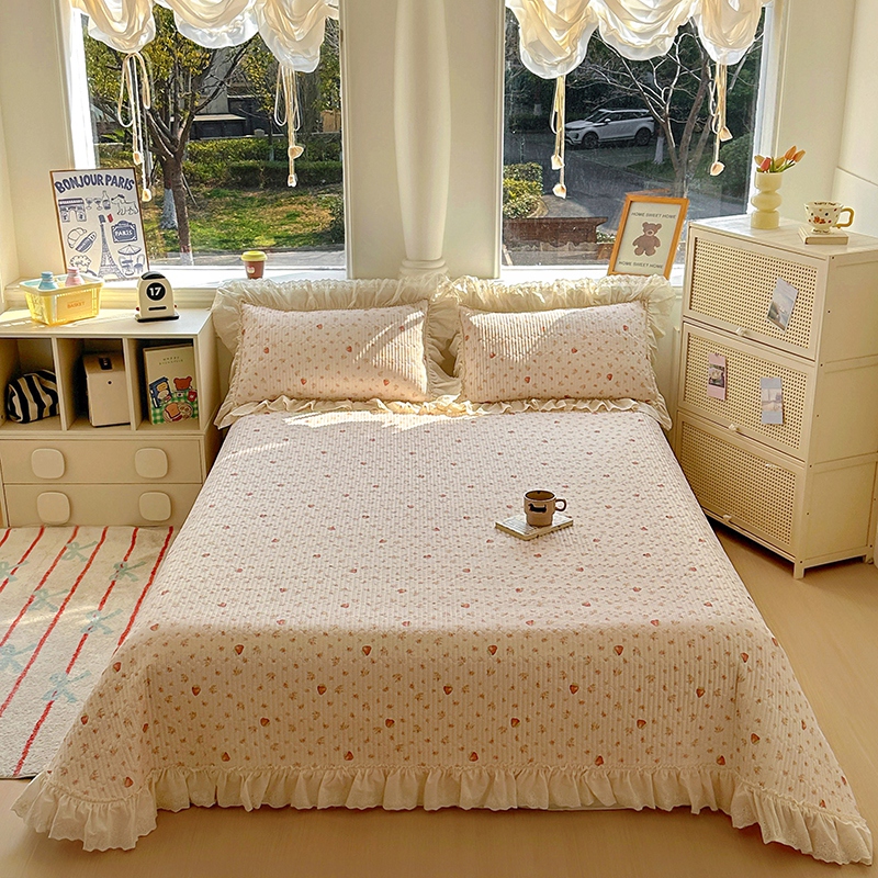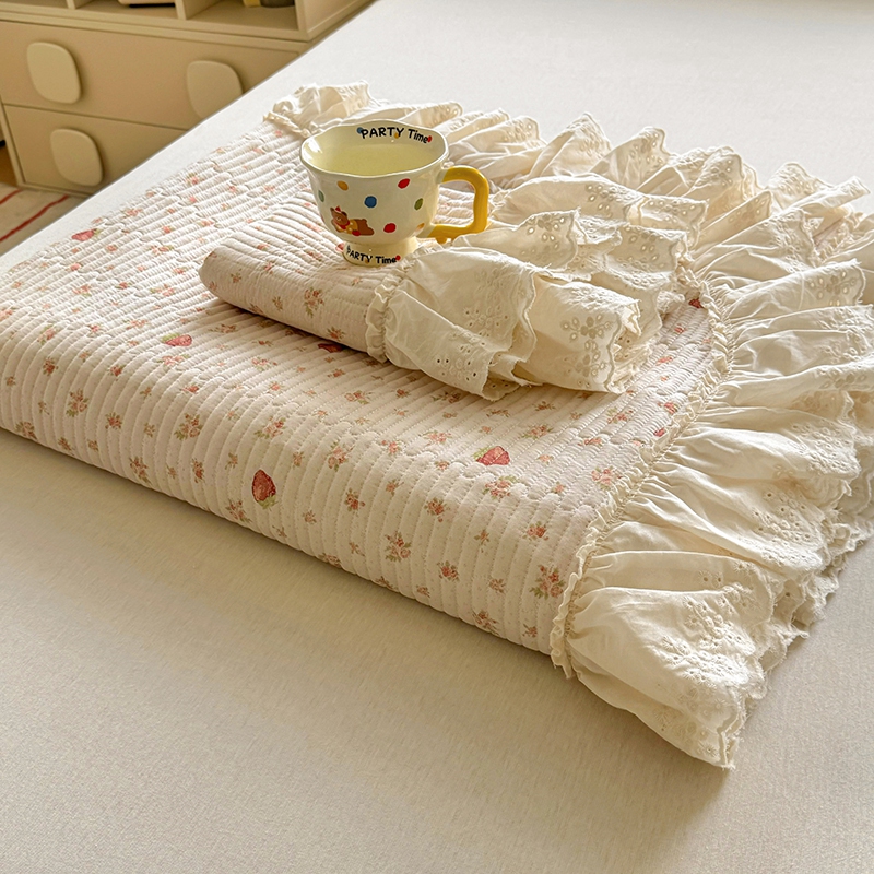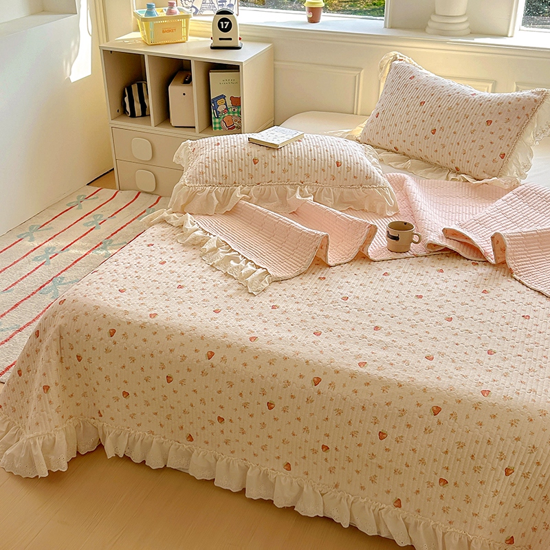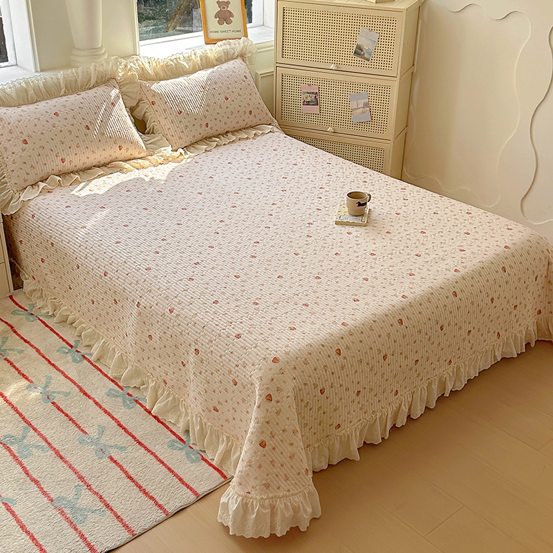 商品名称:昊川 2025新款60支全棉双层纱酵素高温砂洗法式床盖 奶油小草莓