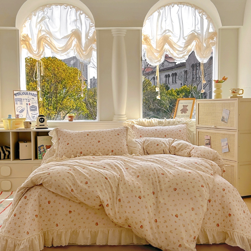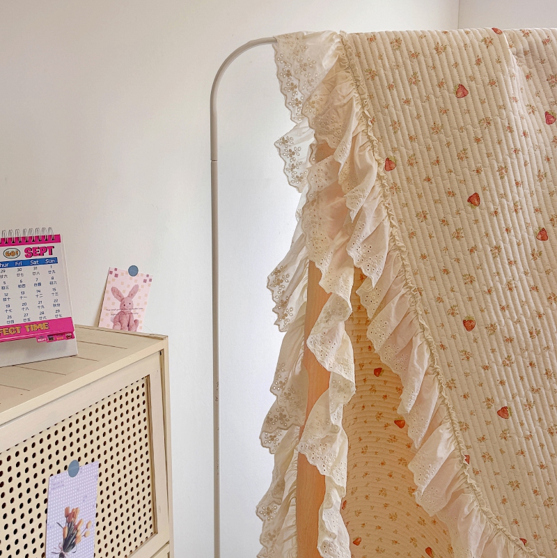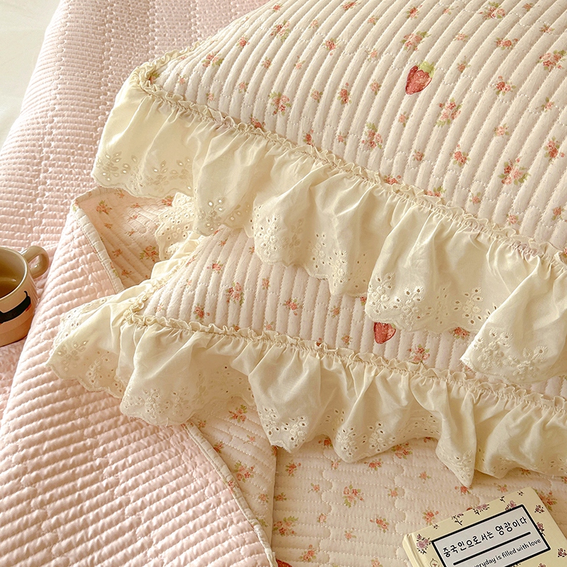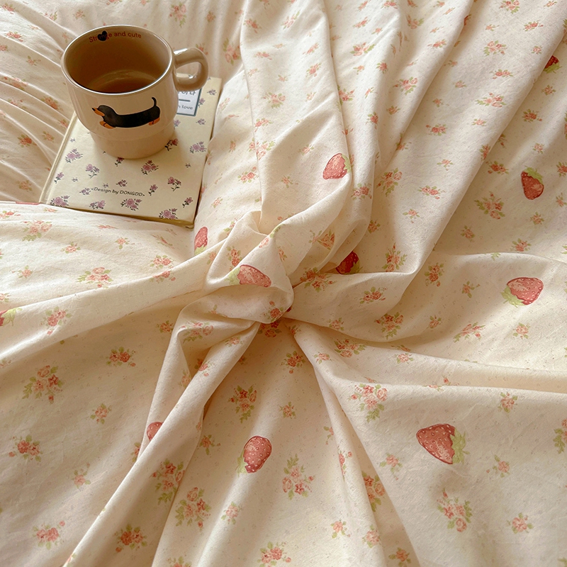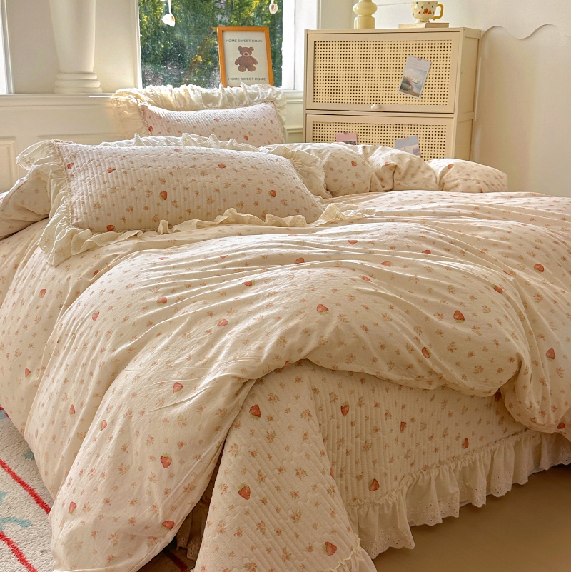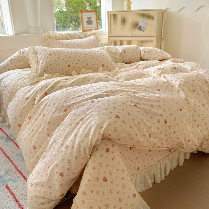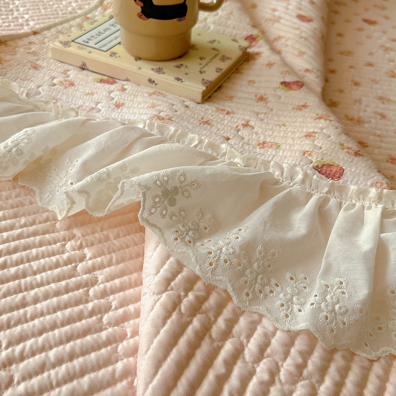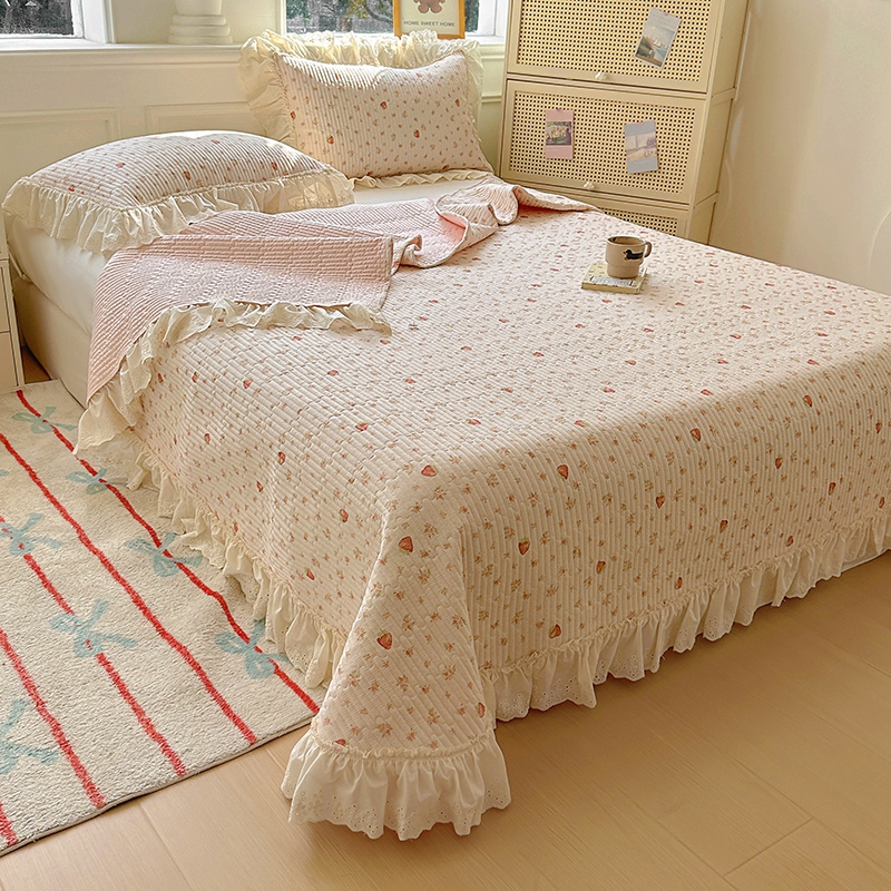 商品名称:昊川 2025新款60支全棉双层纱酵素高温砂洗法式床盖 奶油小草莓