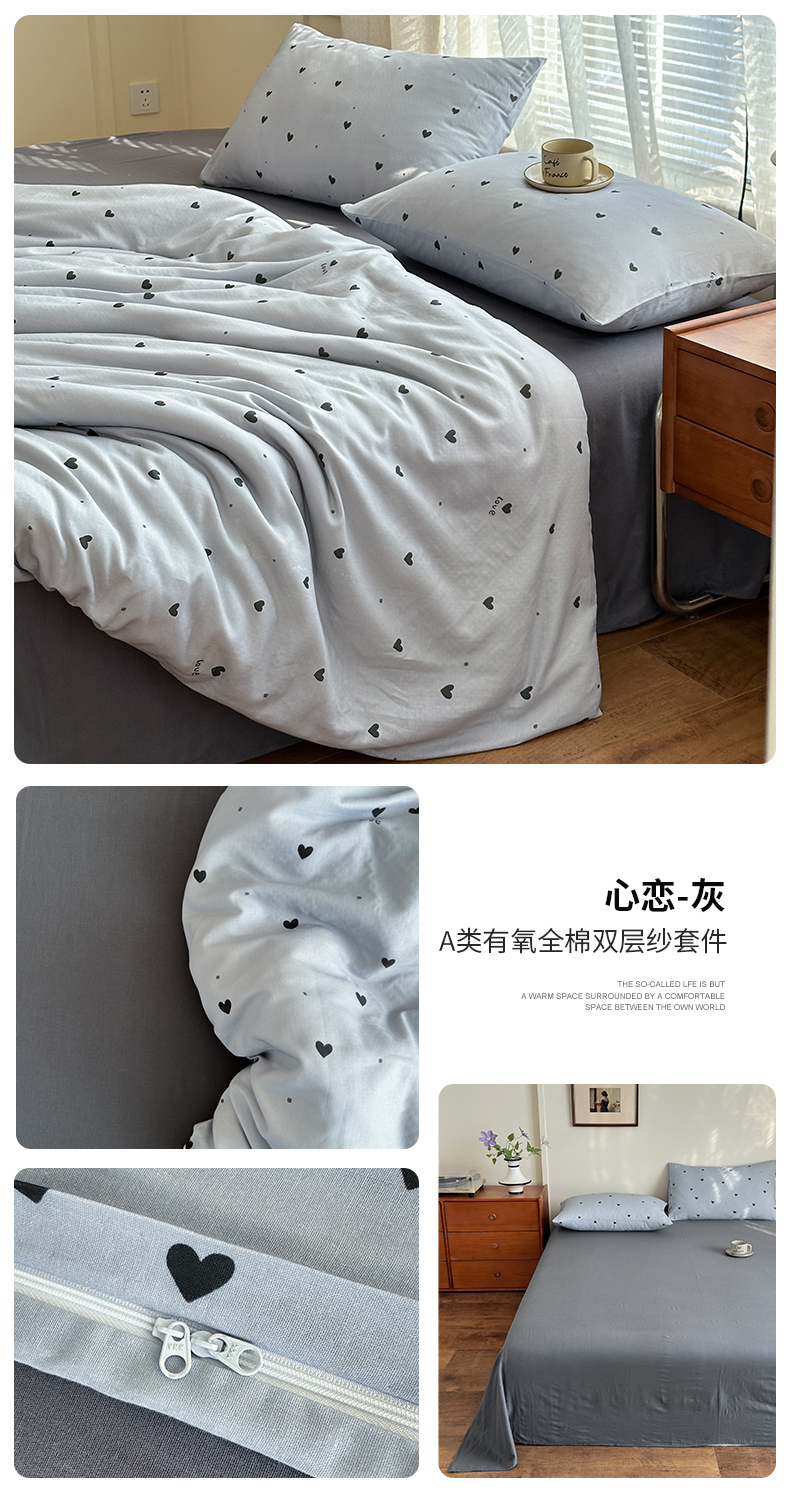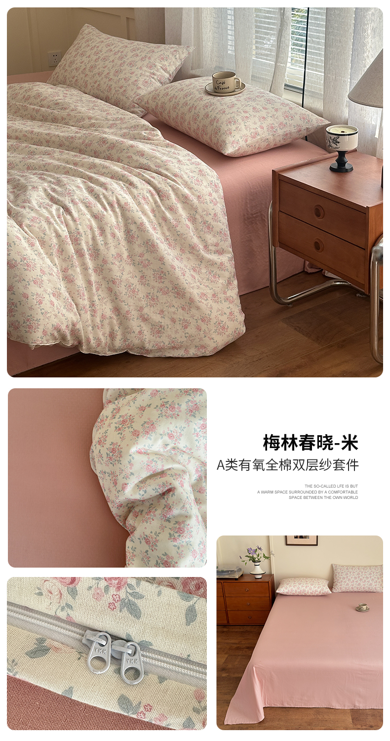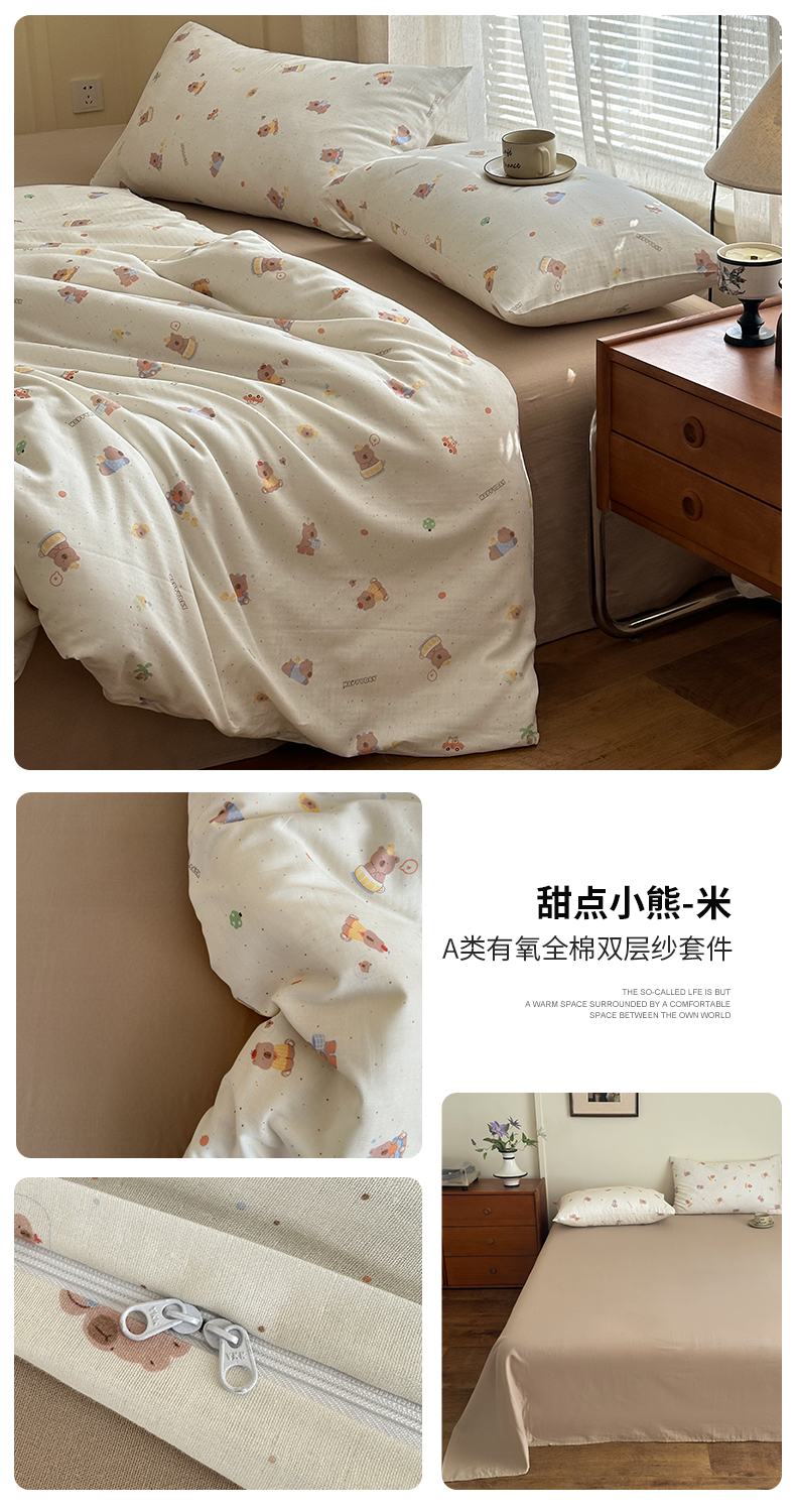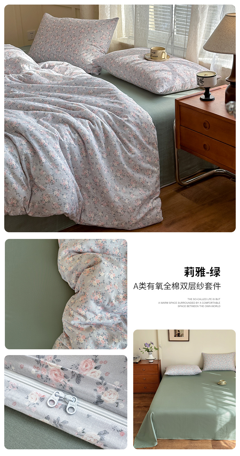 商品名称:(总)曲之慕2025新款A类母婴级有氧全棉纯棉双层纱印花四件套