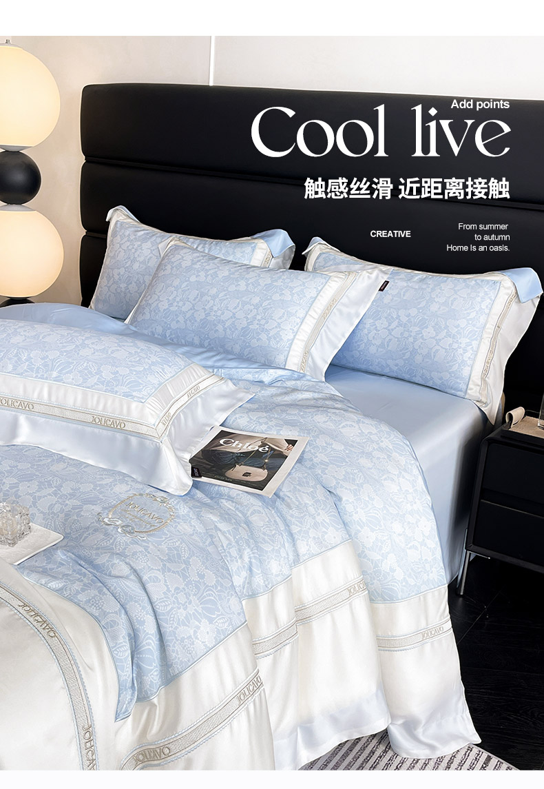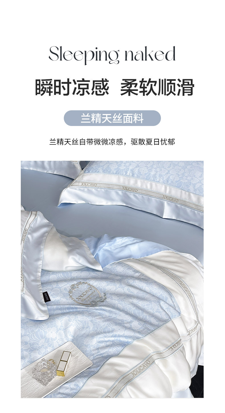 商品名称: 2025新款高端轻奢A类母婴级兰精天丝全工艺刺绣四件套高端真丝夏季丝滑裸睡床上用品 维曼-香颂蓝