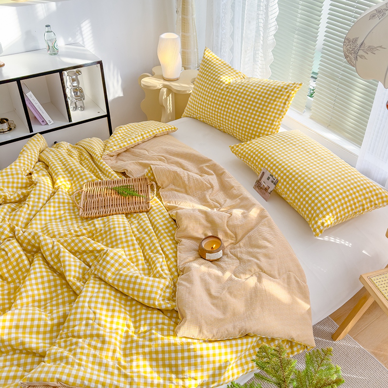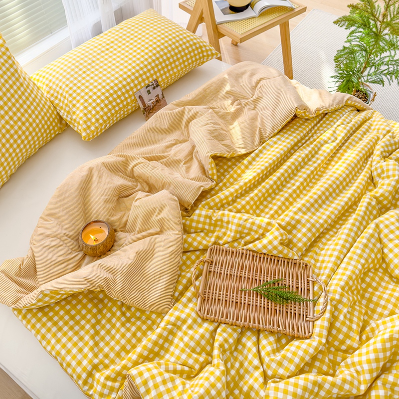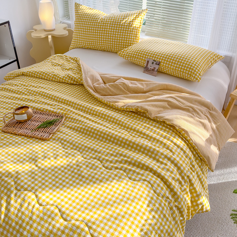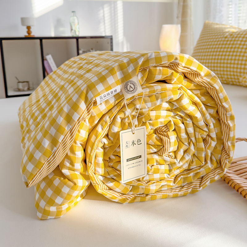 (总)老帅的工厂店 2025新款云朵棉无印风格子夏被,冰激凌粉,洛卡蓝,麦田黄,麦田蓝,青柠绿,蓝小格,粉小格,黄小格,咖大格,蓝大格,绿小格