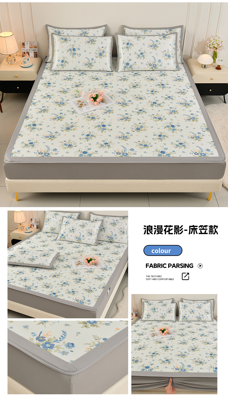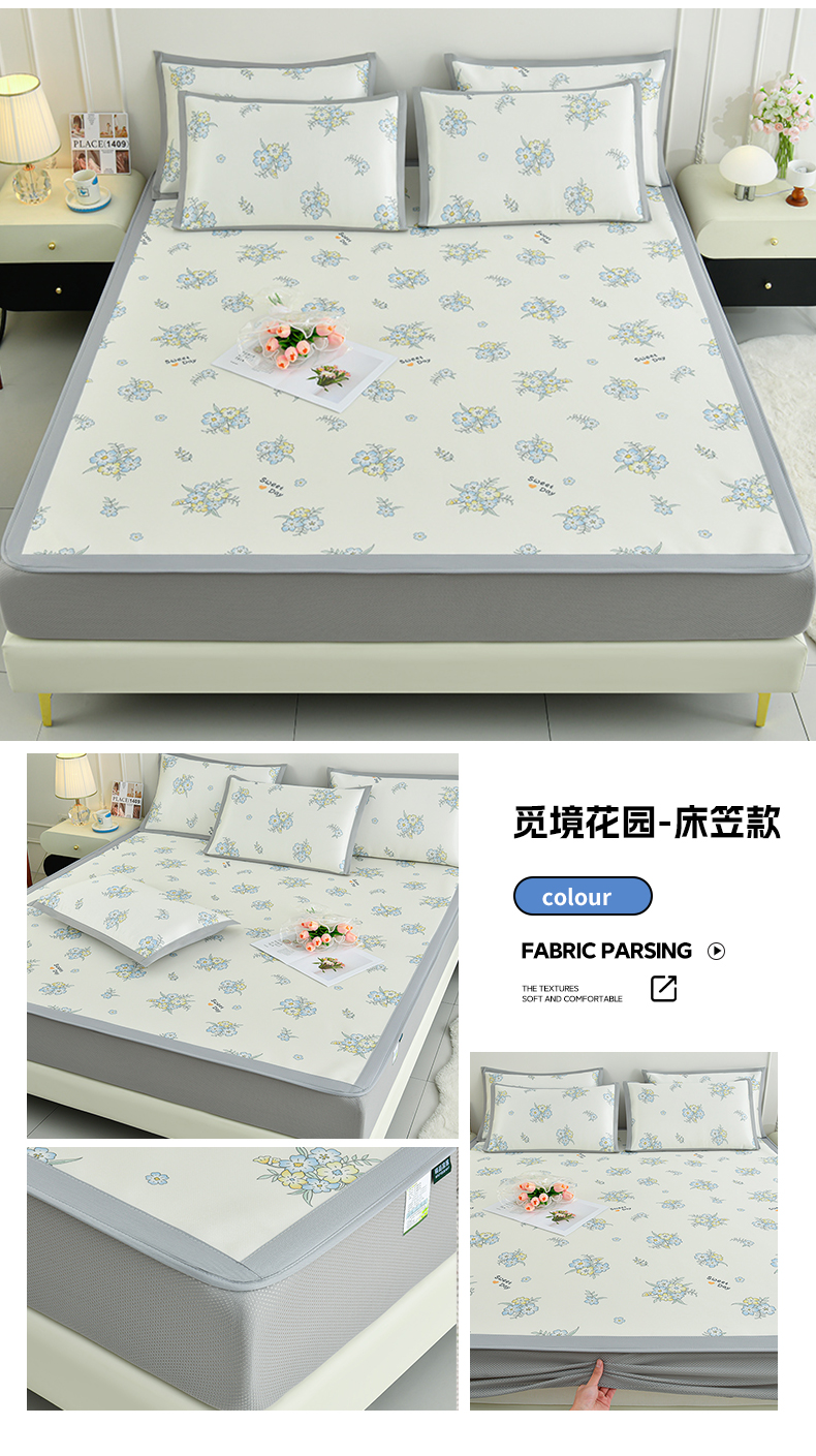 (总)简一 2025新款A类碳光印花数码冰丝凉席系列-床笠款