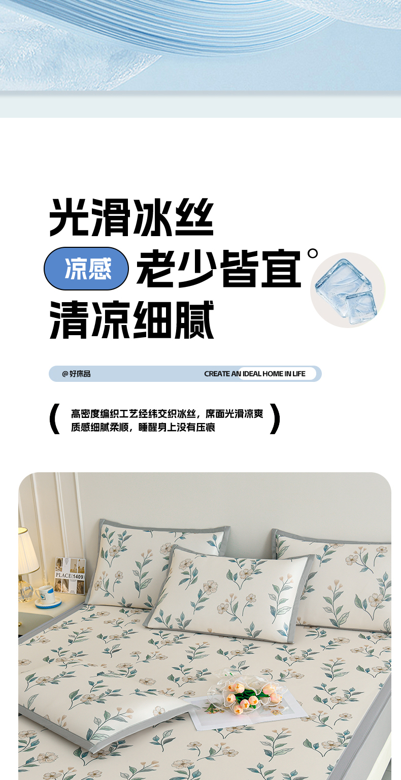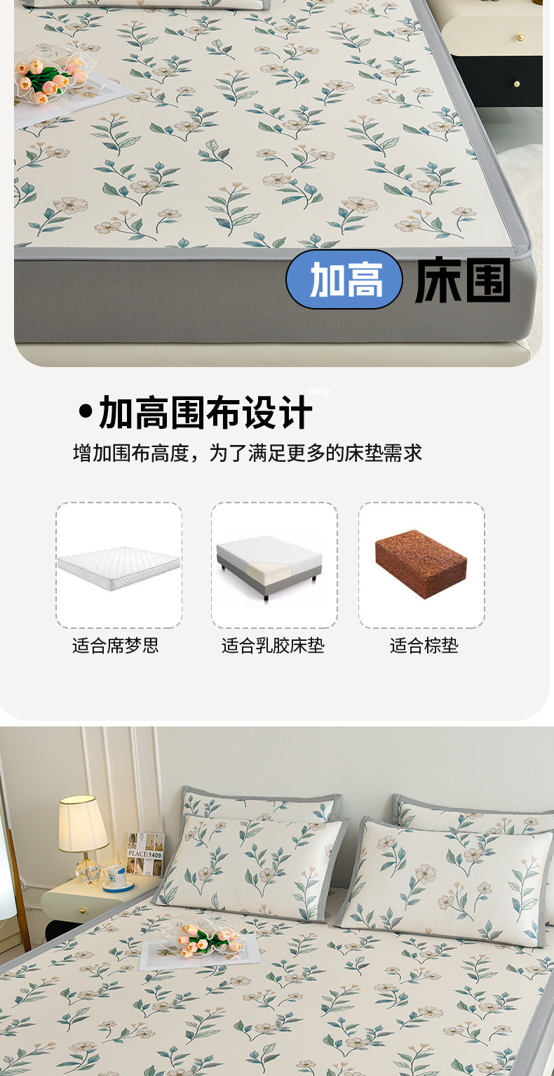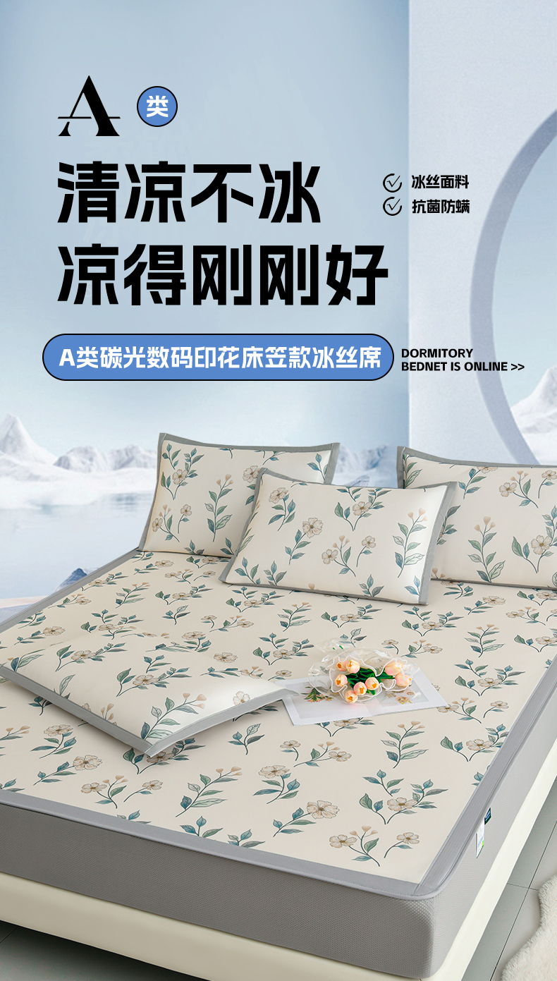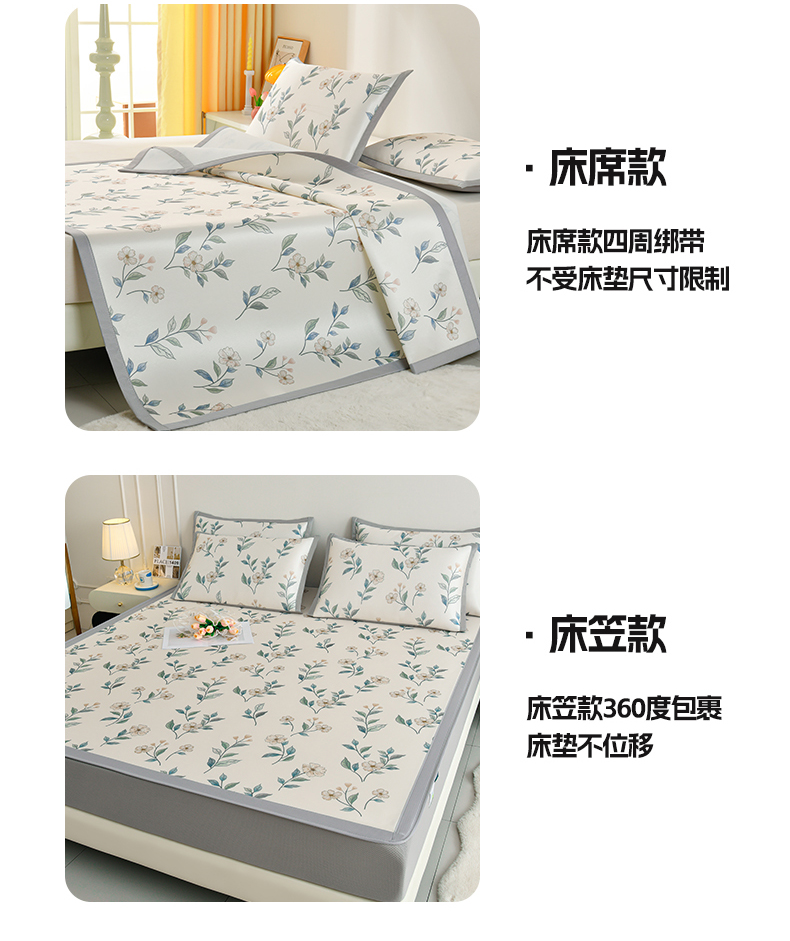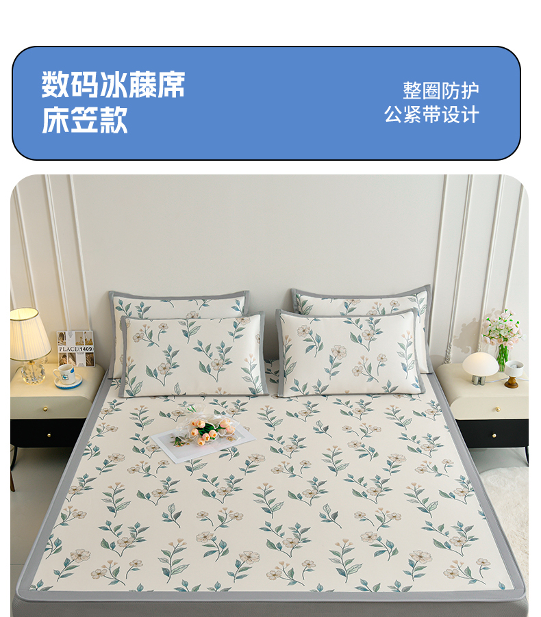 商品名称:(总)简一 2025新款A类碳光印花数码冰丝凉席系列-床笠款