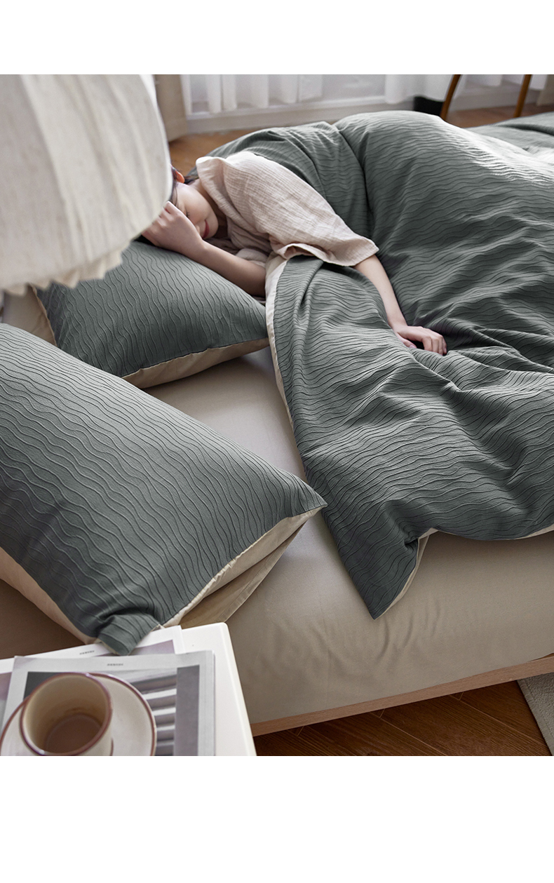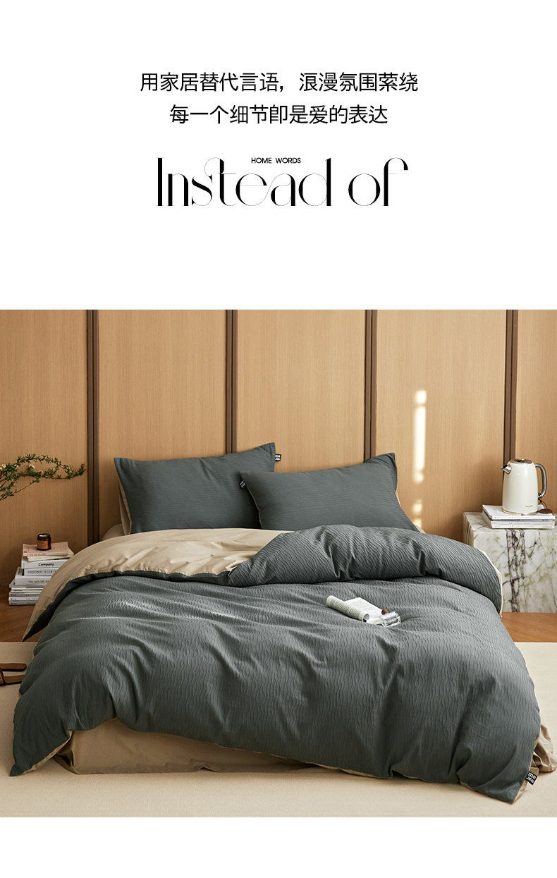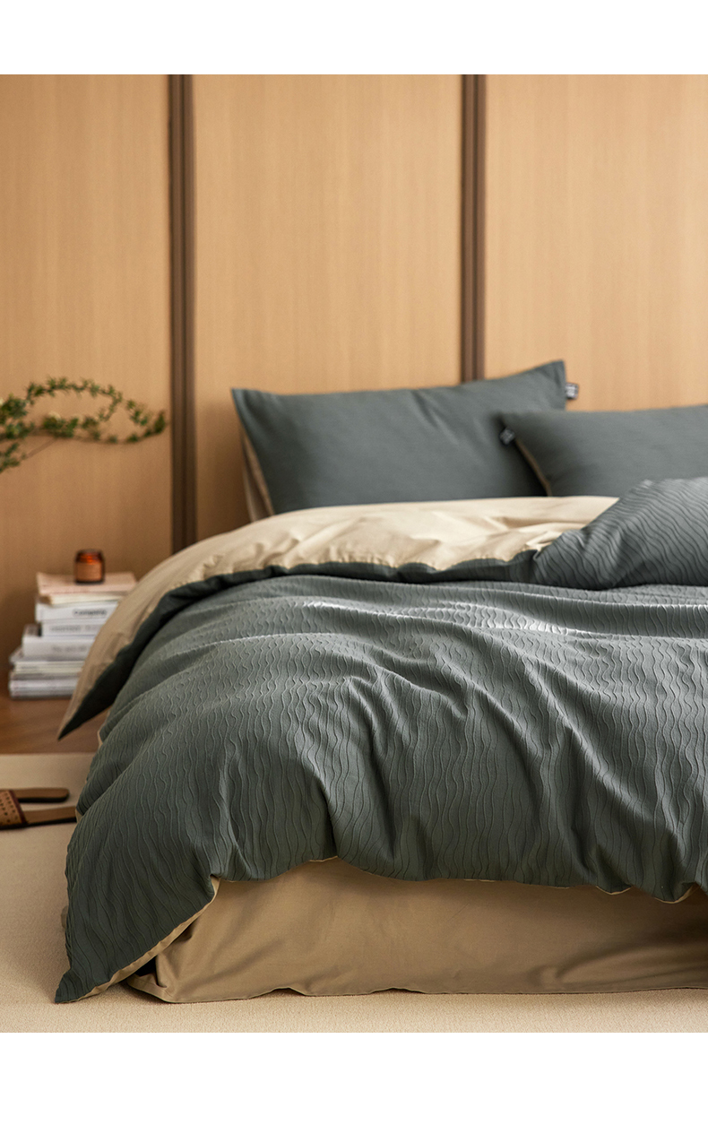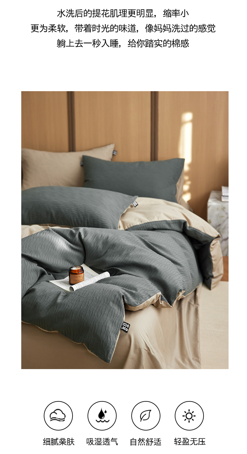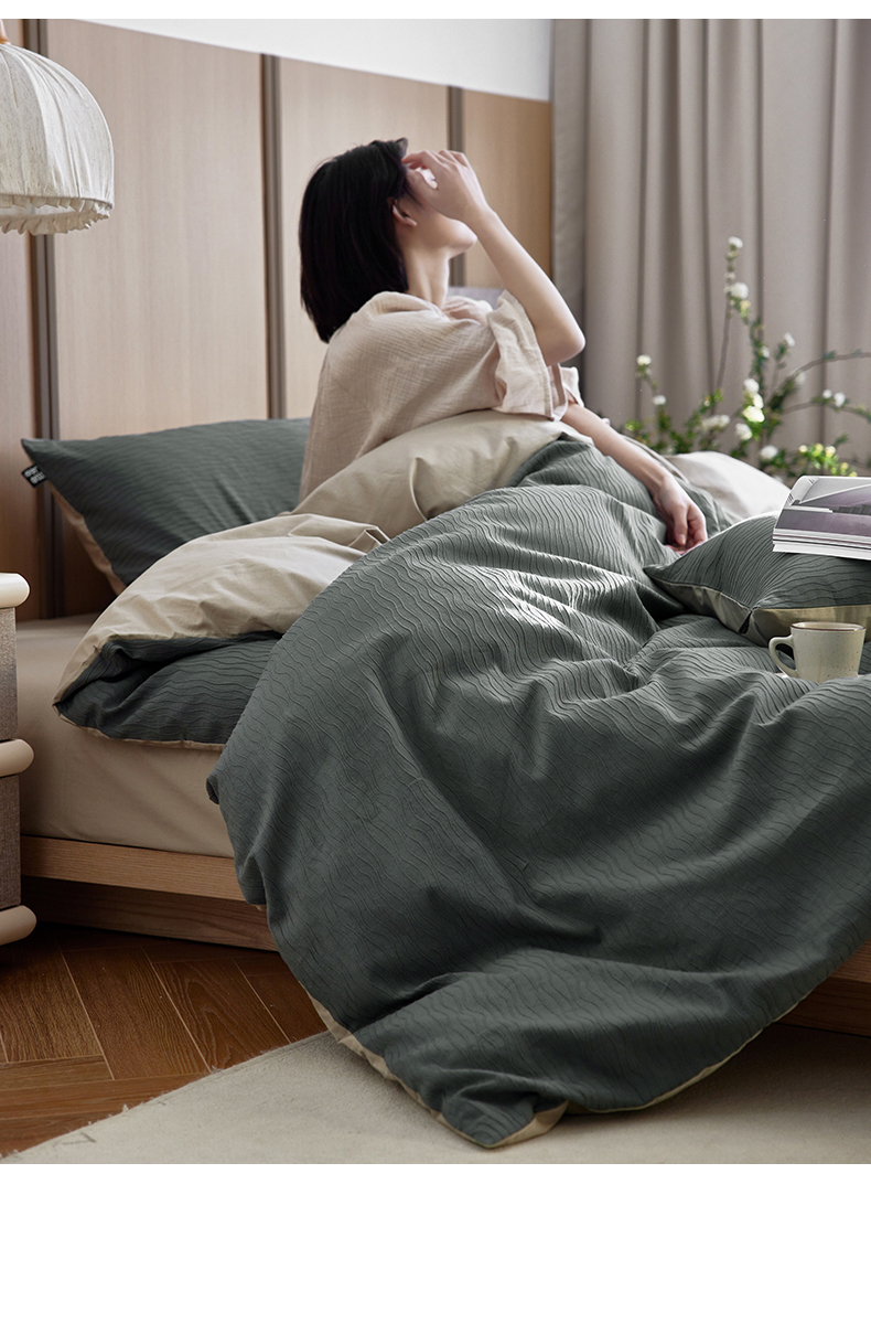 当前位置: 91家纺网 > 商品网购 > 床品套件 > 四件套 > 全棉普通四件套 > 风向标家纺 2025新款全棉波纹纱提花原木风四件套 波纹纱-森屿灰