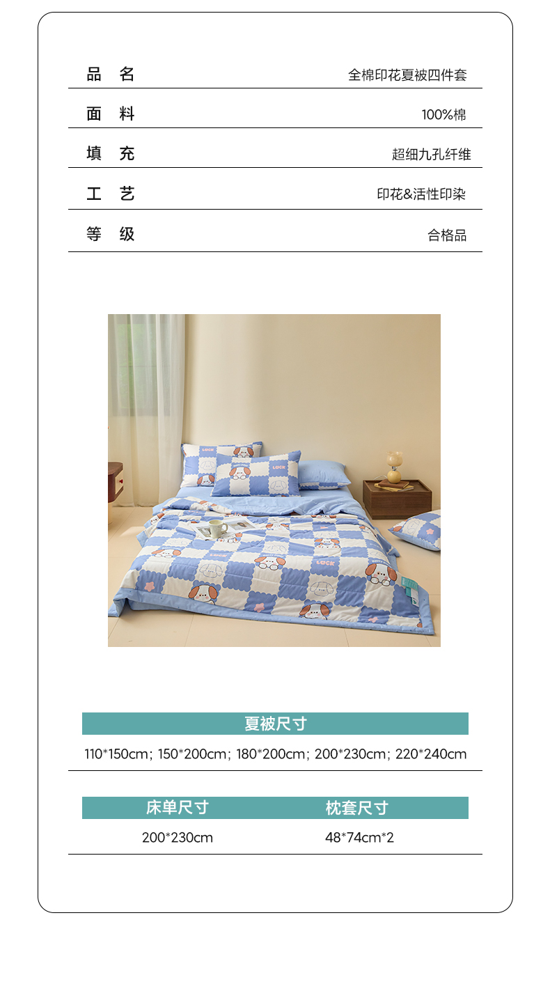 商品名称:宝士康家纺 2025新款10A抗菌全棉夏被 被子被芯 嗨皮狗