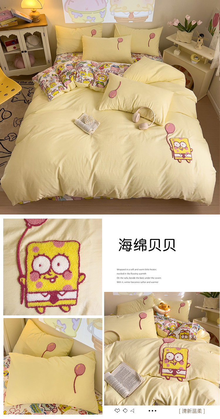 商品名称:苏拉家居 2025新款A类水洗云朵棉毛巾绣+印花系列四件套 小海狸