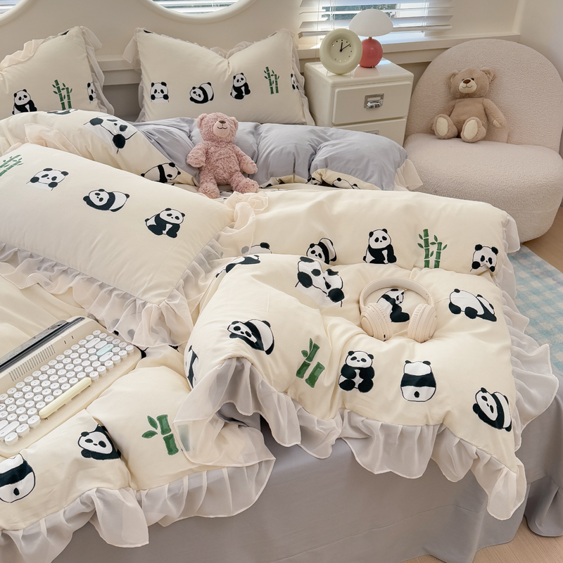 (总)云木里 2025新款刺绣水洗棉床褥式夹棉床笠,熊猫果绿,熊猫卡其,熊猫米白,熊猫深灰,熊猫雾蓝,郁金香果绿,郁金香卡其,郁金香米白,郁金香深灰,郁金香雾蓝