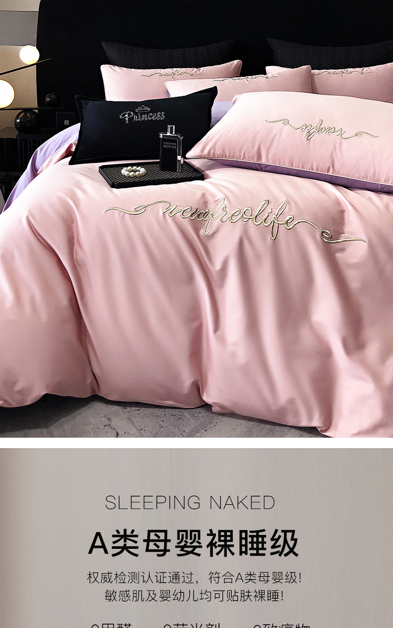 (总)禧澜庭 2024新款高支纯棉全棉斜纹四件套刺绣绣花款轻奢三件套,布鲁灰,戴妃粉,戴妃粉+魅紫,皓月白+卡其,皓月白+柔粉,魅力蓝,魅力蓝+浅灰,莺茶绿+卡其,月光灰,珠光紫