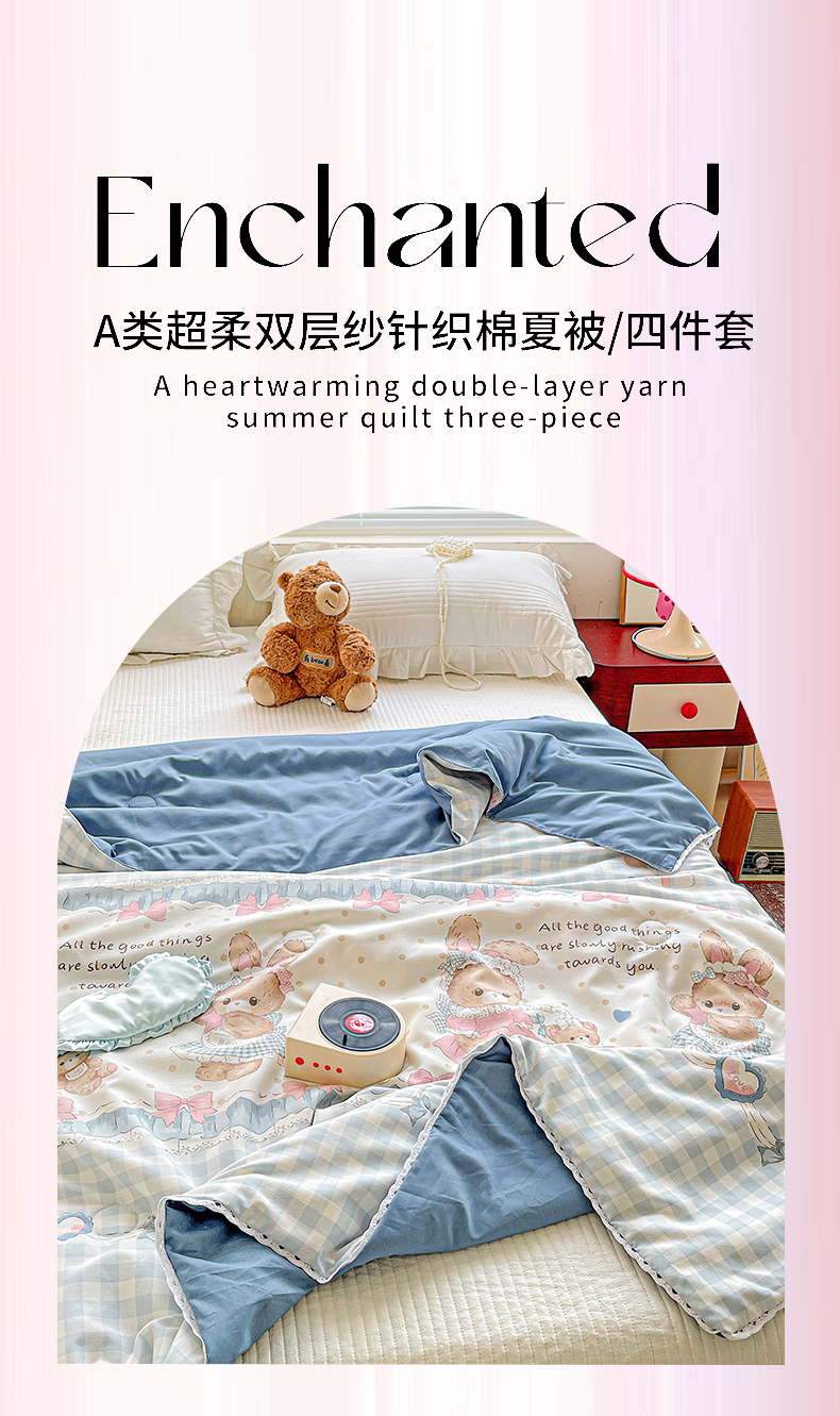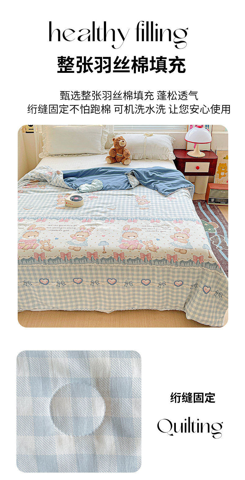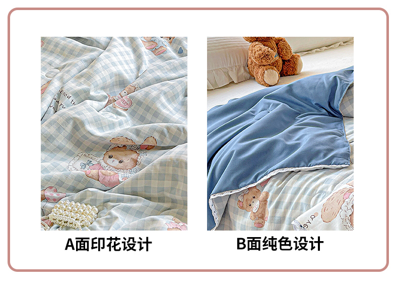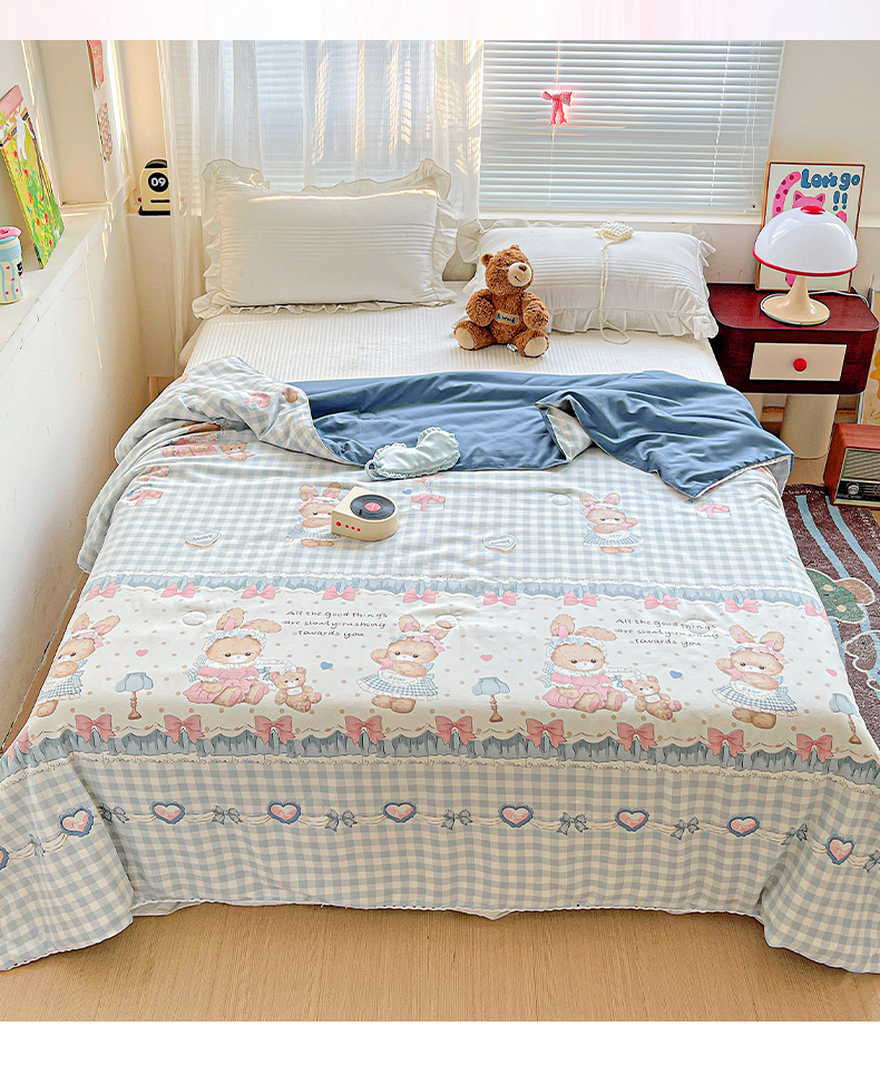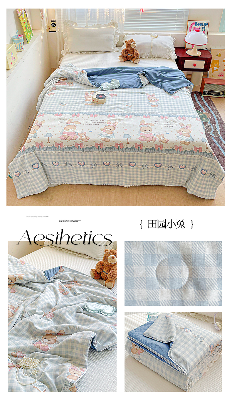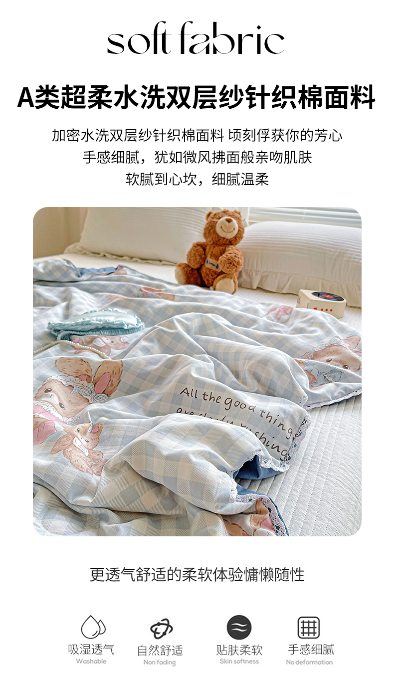 商品名称:妖妖家纺 2025新款超柔双层纱糯糯针织棉夏凉被 田园小兔