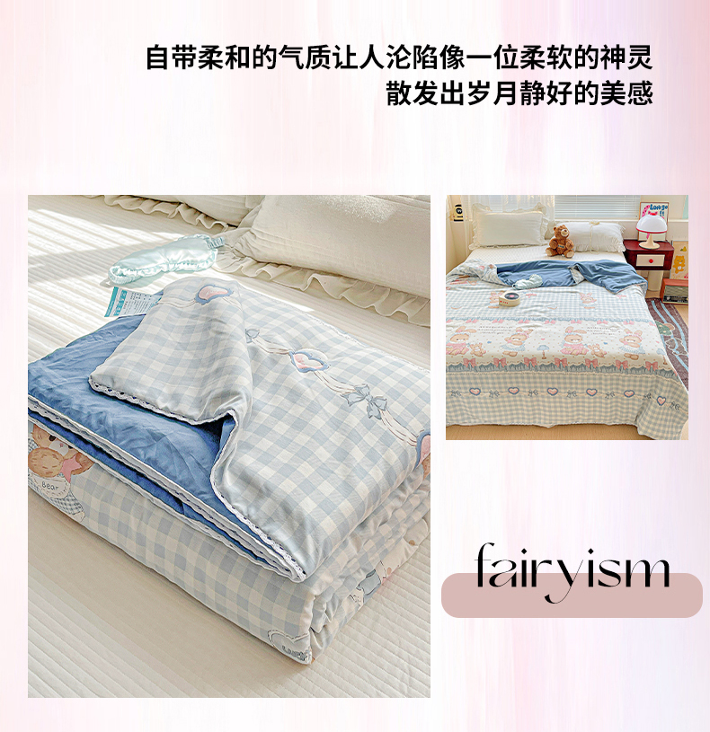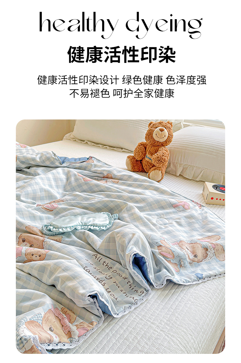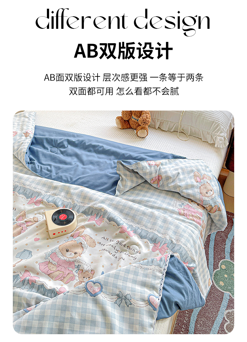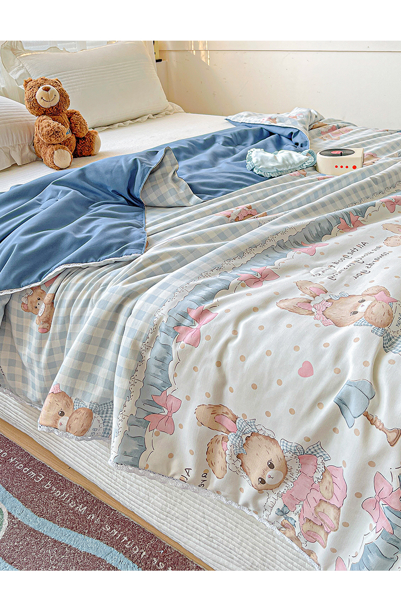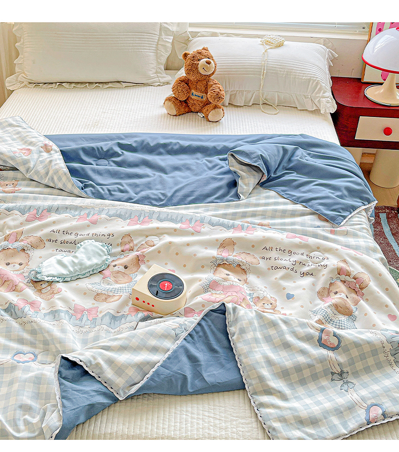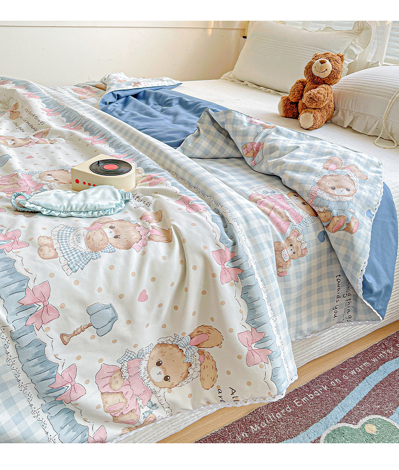 商品名称:妖妖家纺 2025新款超柔双层纱糯糯针织棉夏凉被 田园小兔
