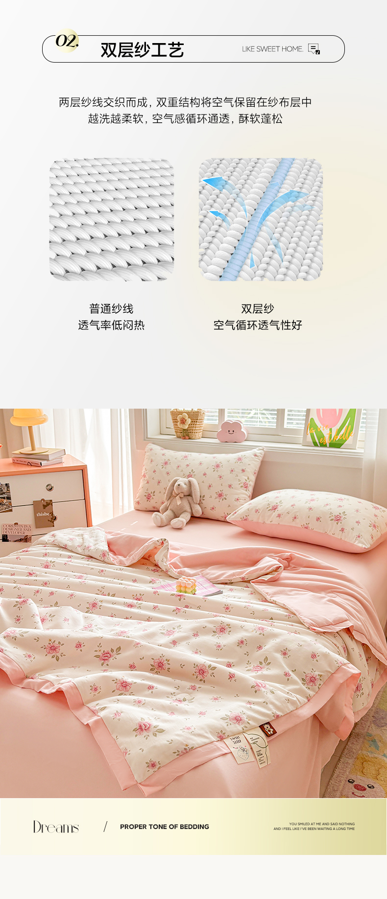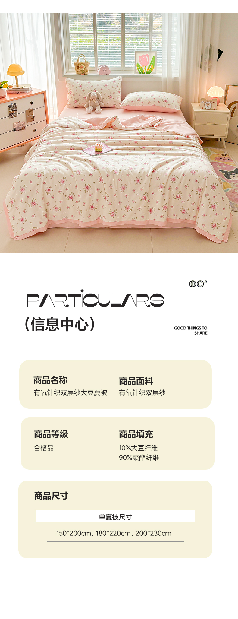 • 91家纺网 家纺一手货源 找家纺 典冠 2025新款有氧针织双层纱大豆夏被夏凉被空调被 半亩花田