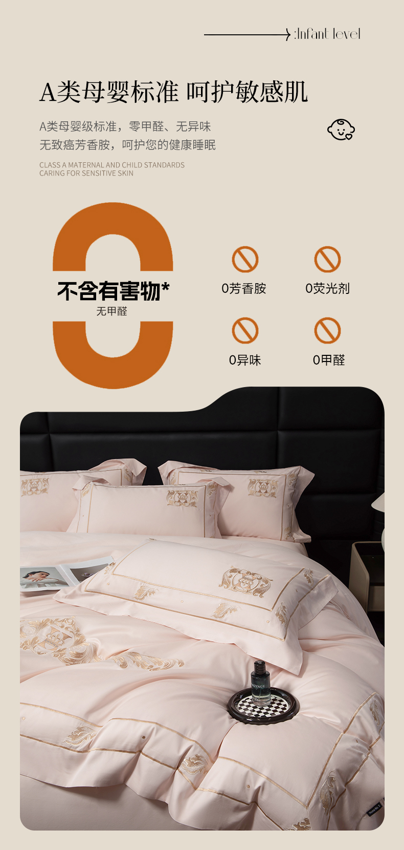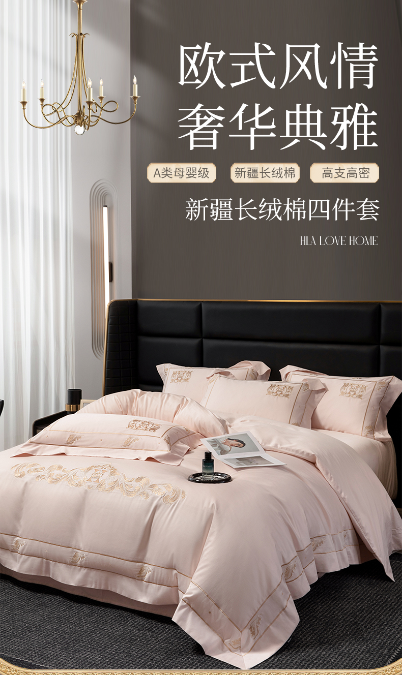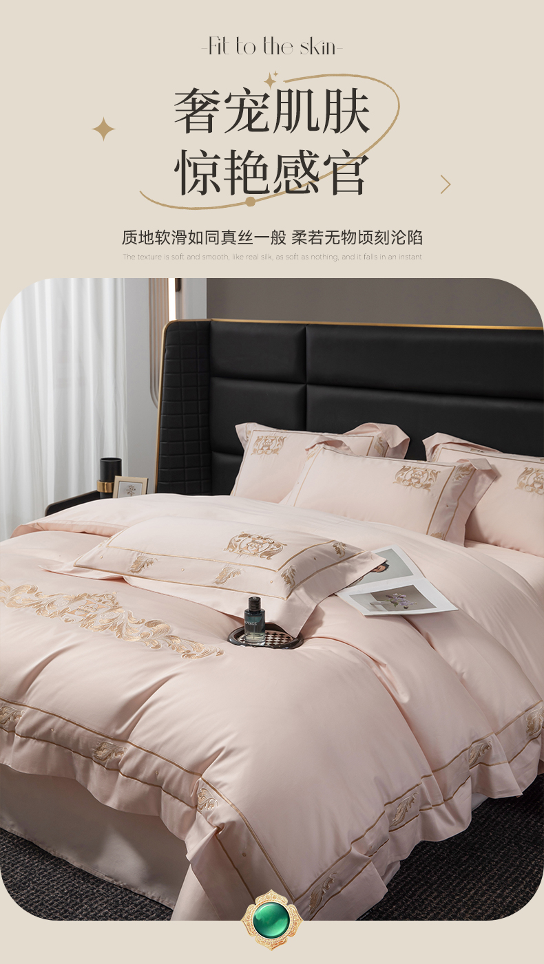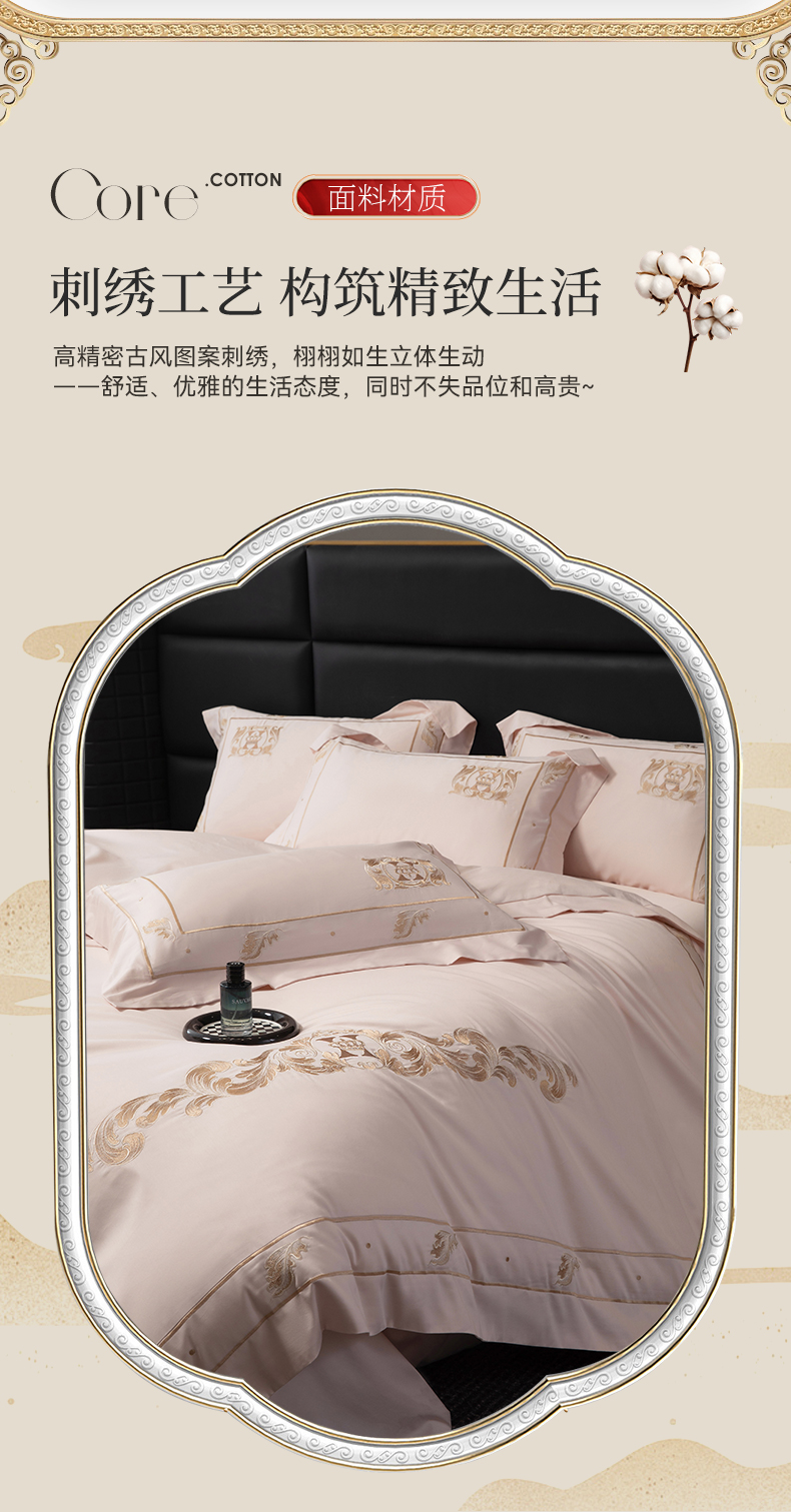 商品名称:家居1号家纺 2025新款新疆长绒棉宽边刺绣四件套-优雅恬静 优雅恬静-公主粉