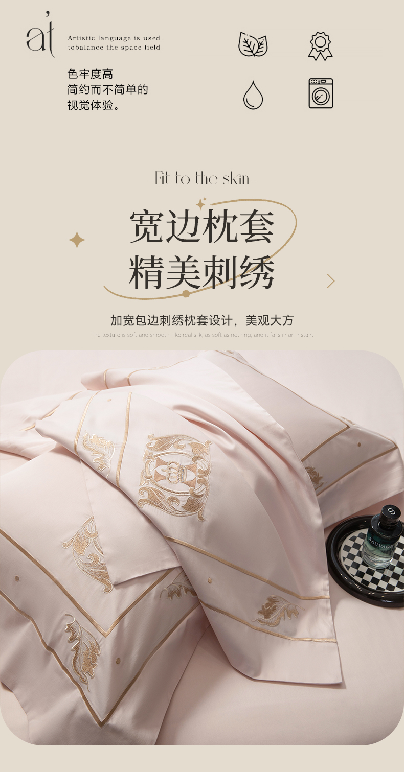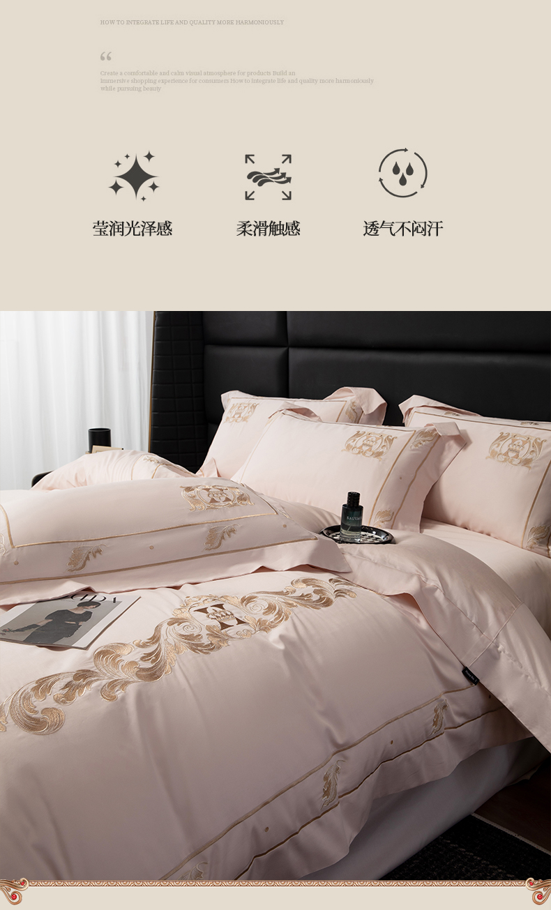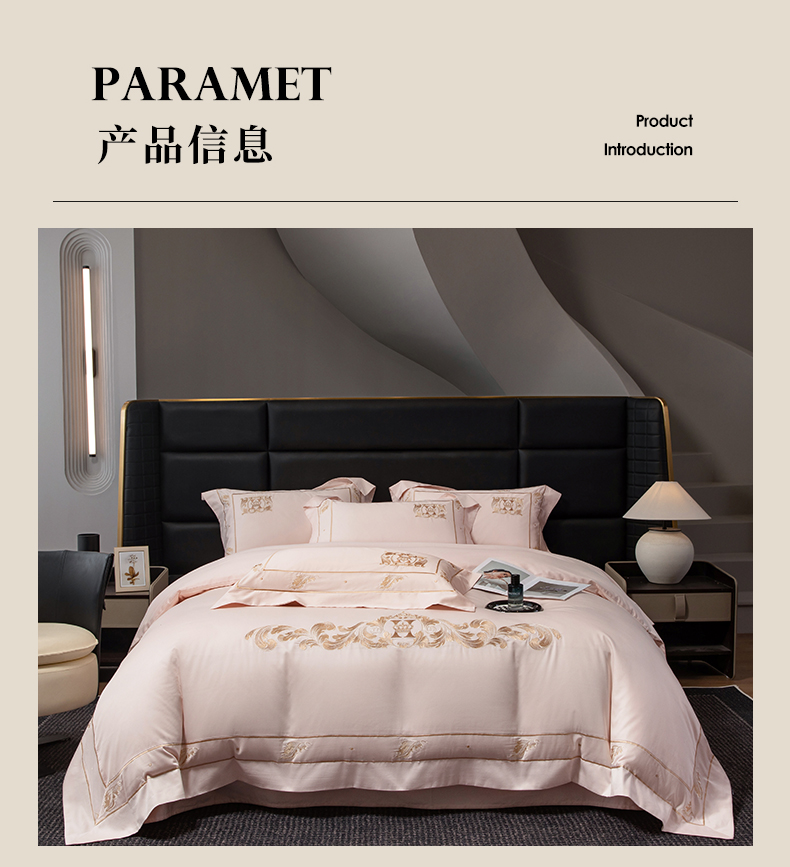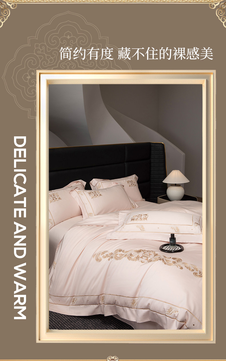 商品名称:家居1号家纺 2025新款新疆长绒棉宽边刺绣四件套-优雅恬静 优雅恬静-公主粉