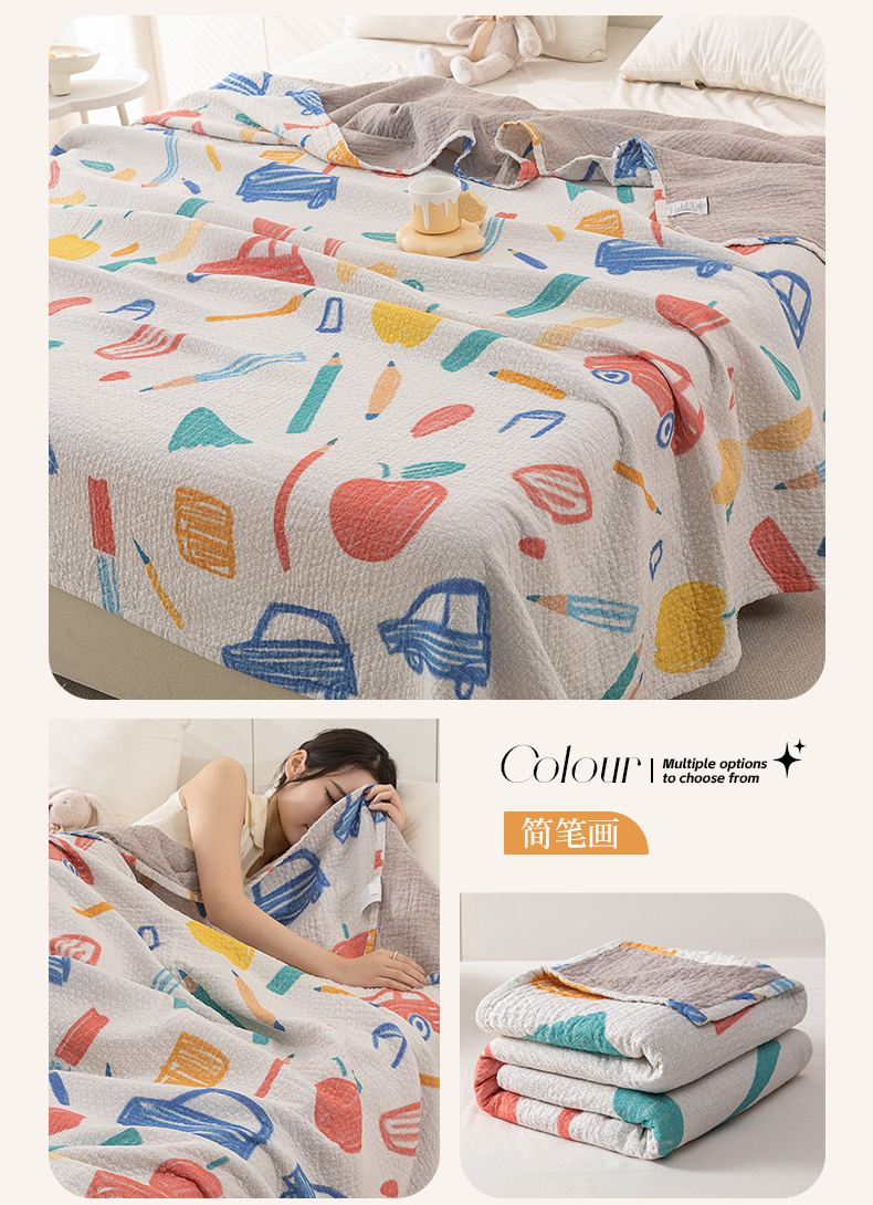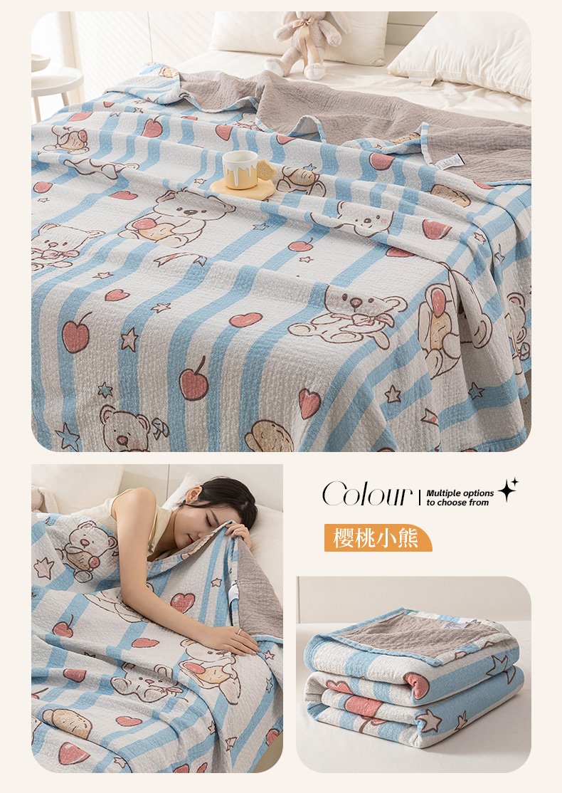 商品名称:(总)乐家毛巾被(工厂自产自销) 2025春夏新款三层全棉纯棉印花毛巾被