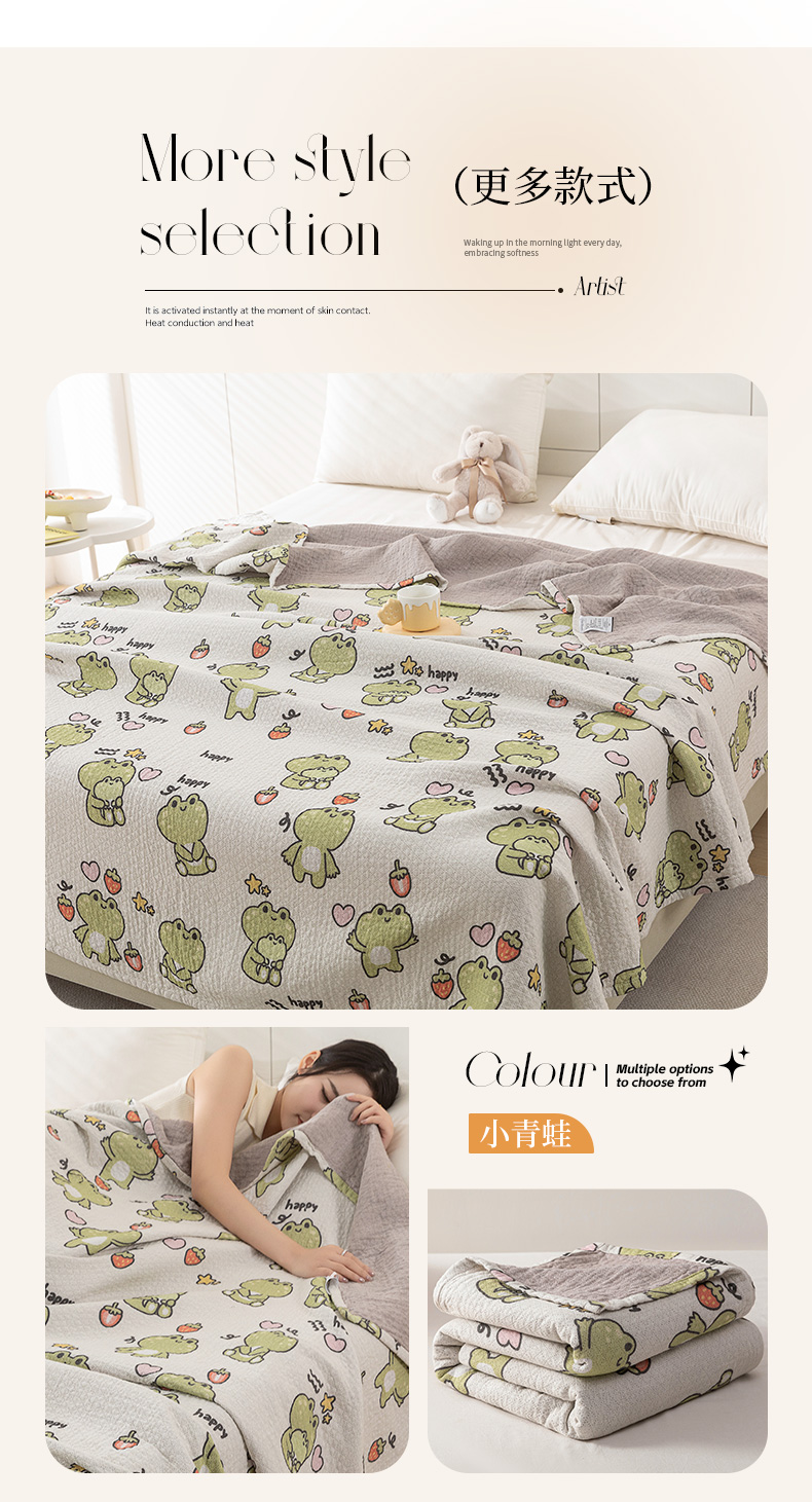 商品名称:乐家毛巾被(工厂自产自销) 2025春夏新款三层全棉纯棉印花毛巾被 小青蛙