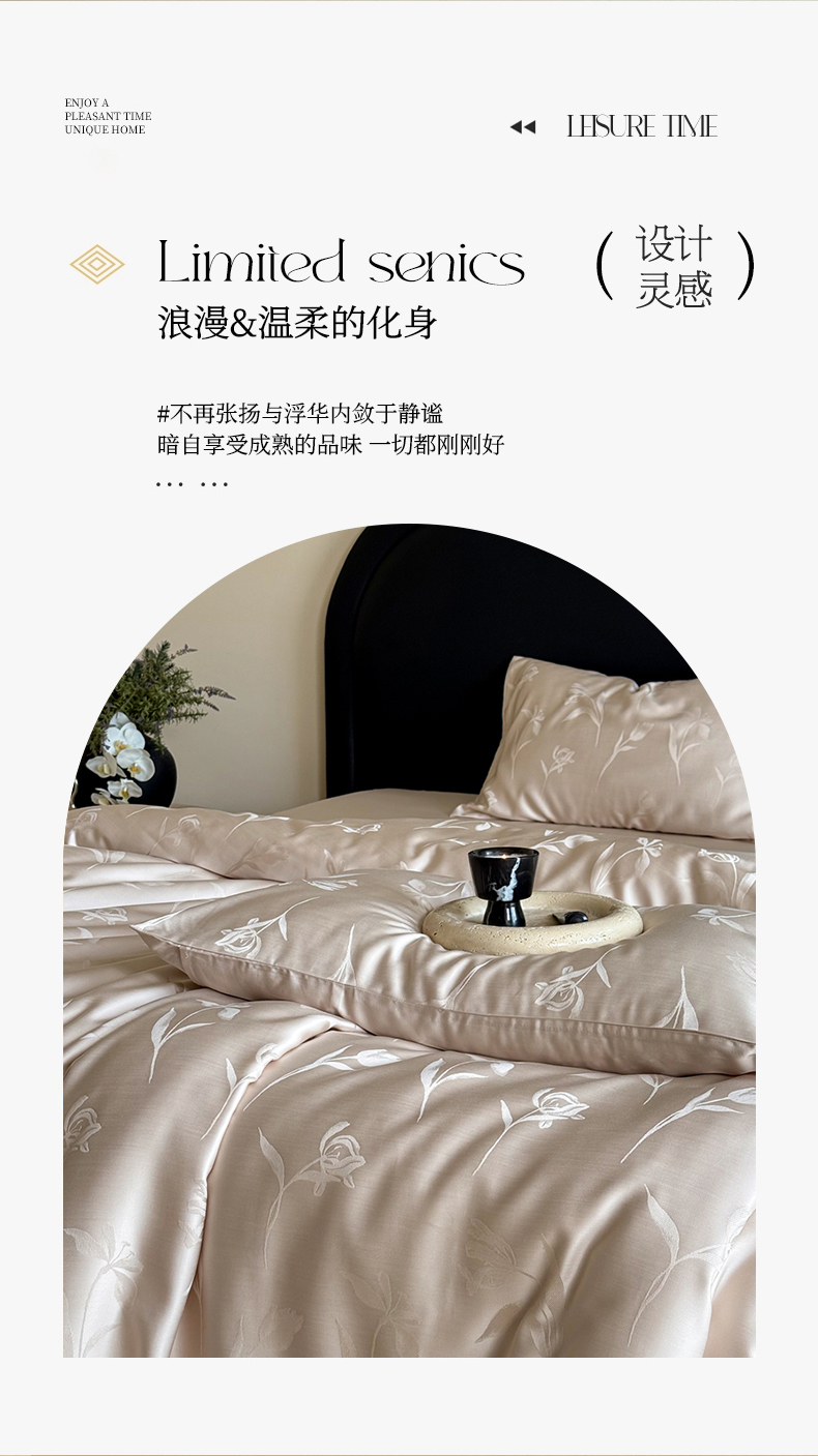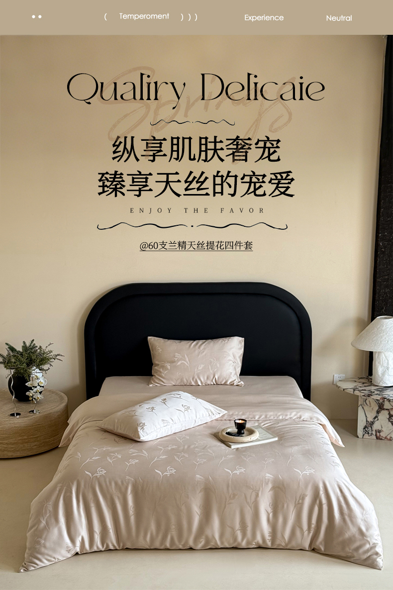 当前位置: 91家纺网 > 商品网购 > 床品套件 > 四件套 > 莱赛尔四件套 > FORTWO2025新款60支兰精天丝浮雕提花四件套 花香