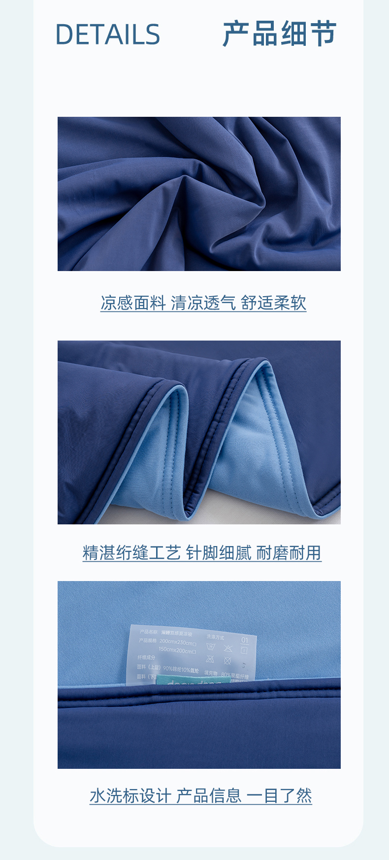 商品名称:花享莱 2025新款亚朵同款夏季双感深睡被夏被夏凉被pro1.0 夏夜深蓝