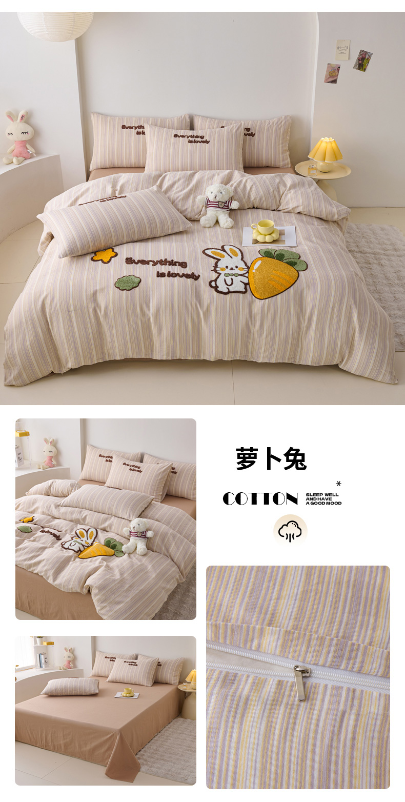 当前位置: 91家纺网 > 商品网购 > 床品套件 > 四件套 > 全棉普通四件套 > 爱思佳2025新款全棉双层纱毛巾绣系列四件套 萝卜兔