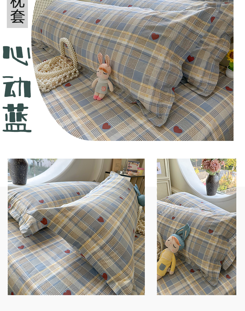 商品名称:百寐 2025新款13372全棉纯棉印花双人枕套+同款床单 格子熊