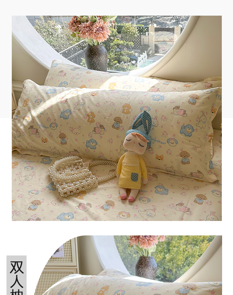 (总)百寐 2023新款全棉13372纯棉碎花小清新卡通枕套,爱心狗,奥汀,初夏,丛林兔,菲菲兔,后花园,花蜜,花悦,画意,兰溪,蘑菇林,秋香,心心熊,紫薇, 笑脸