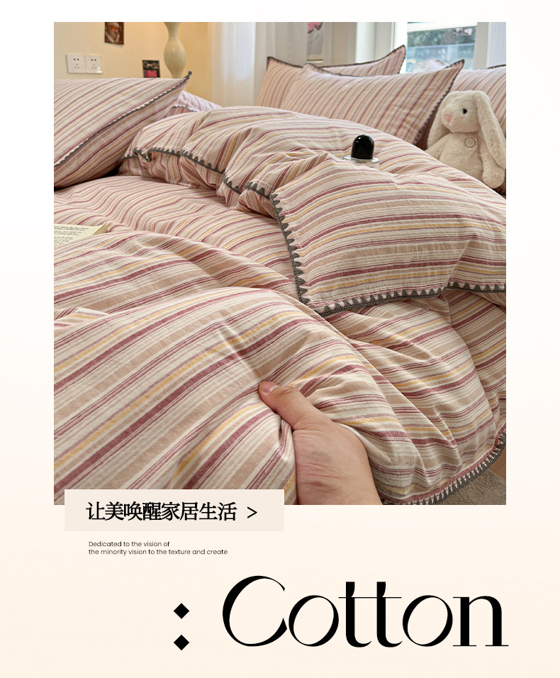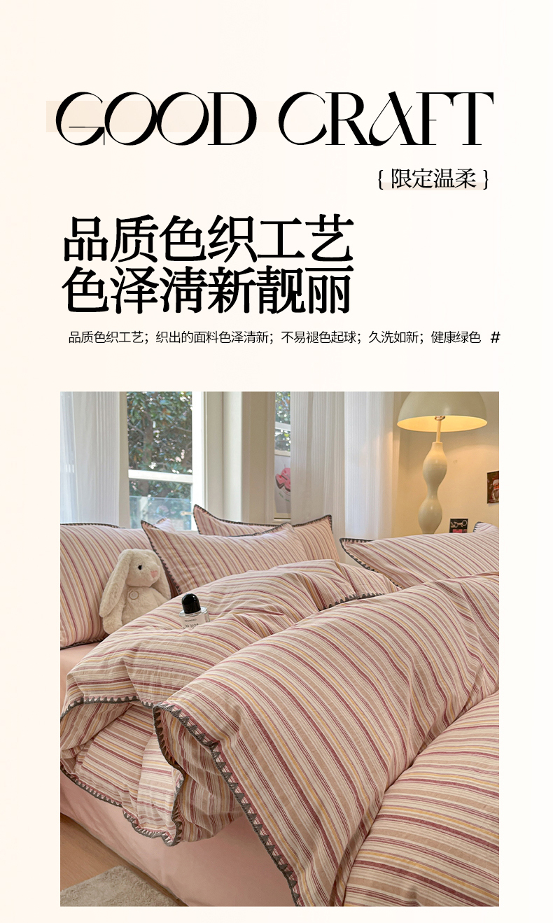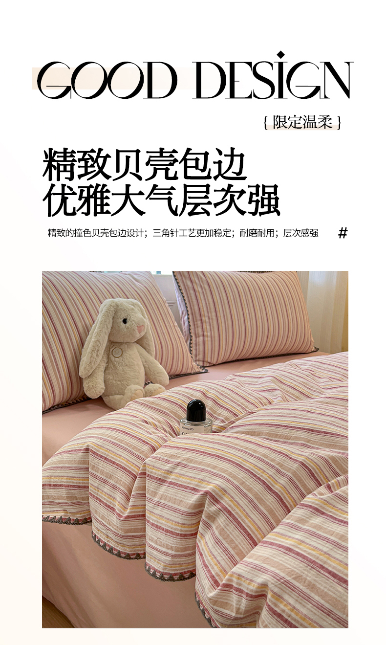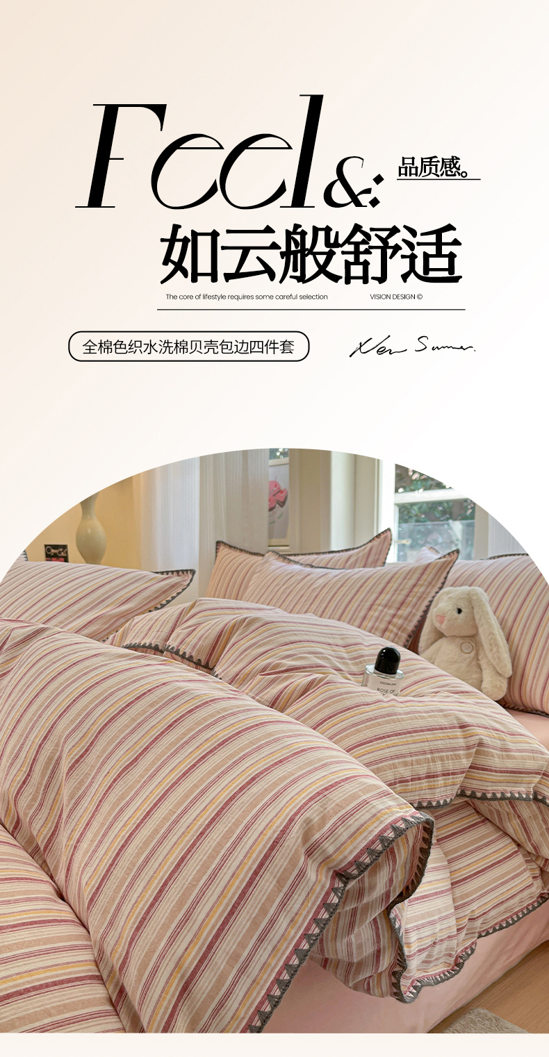 当前位置: 91家纺网 > 商品网购 > 床品套件 > 四件套 > 全棉活性四件套 > 莱茵家居 2025新款全棉色织水洗棉贝壳包边四件套生椰系列 红钻咖