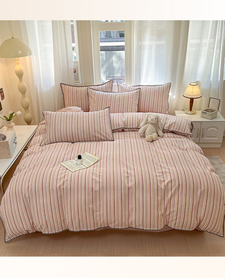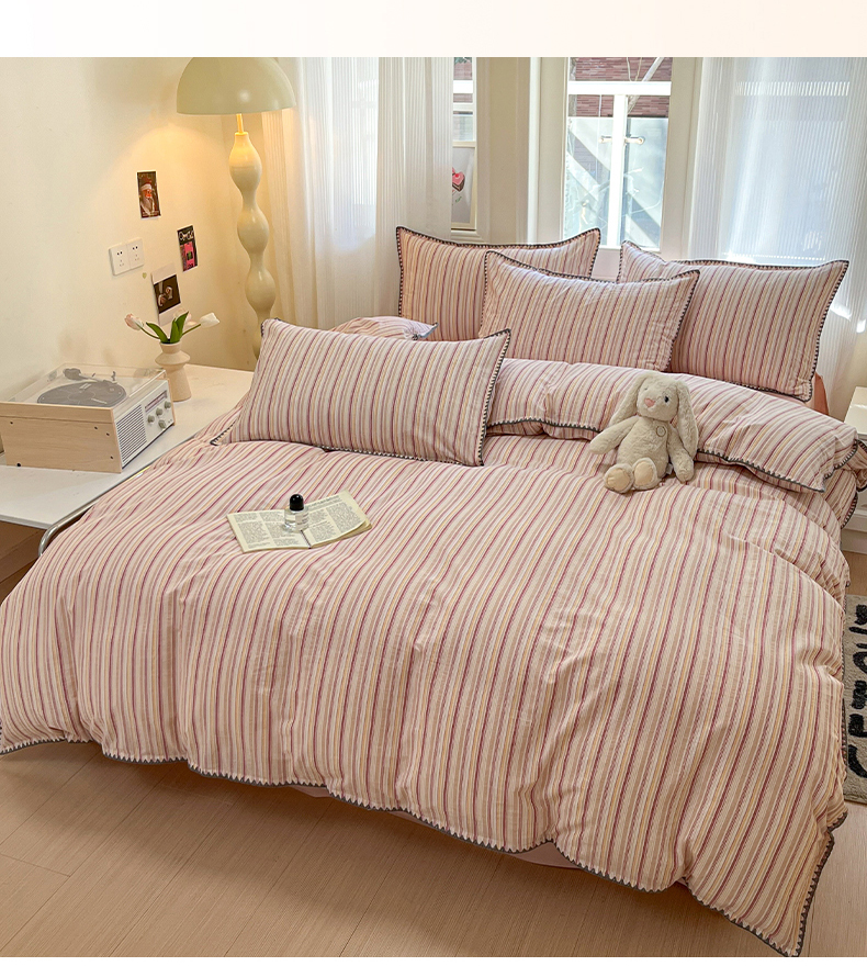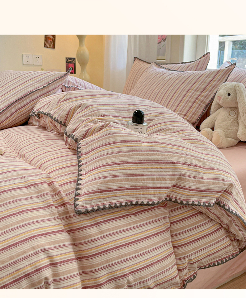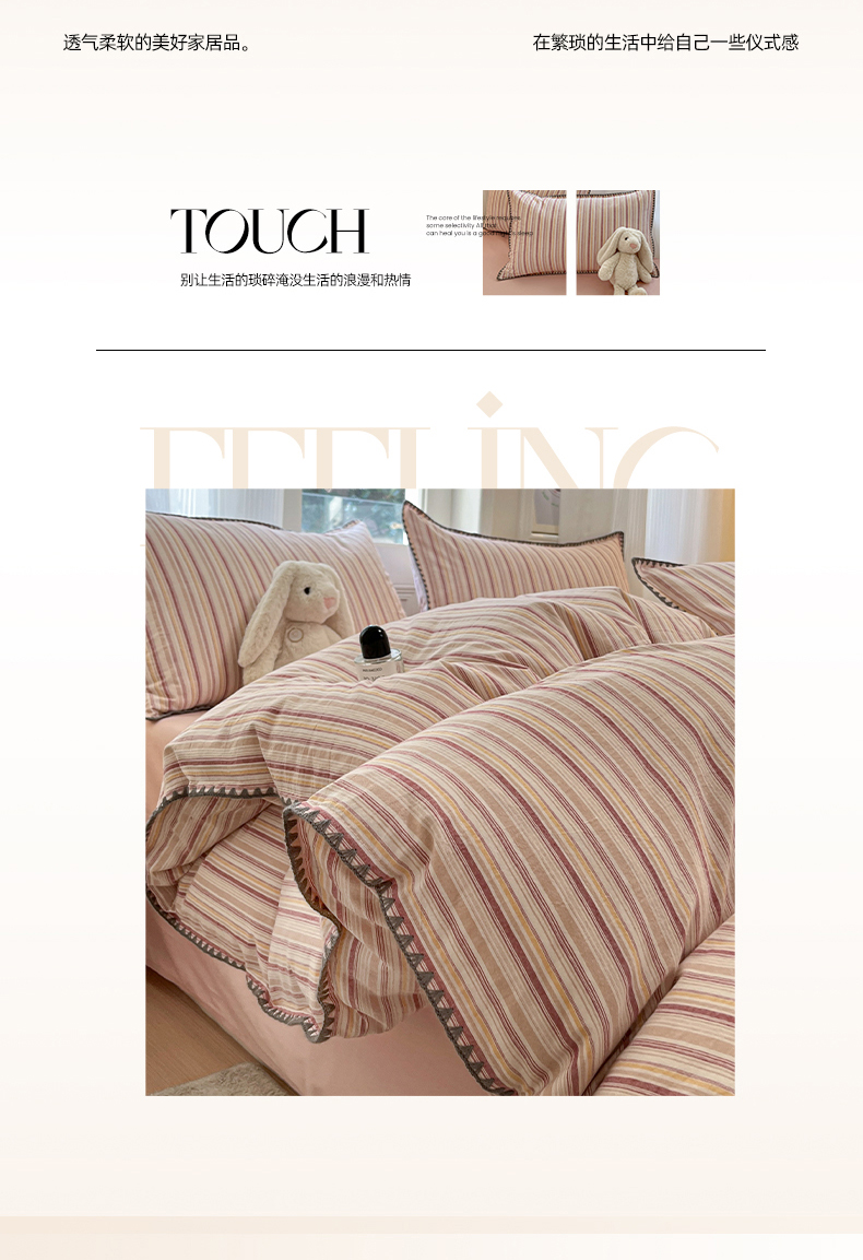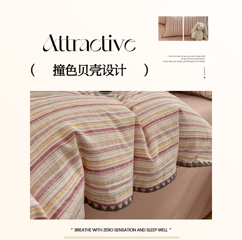 当前位置: 91家纺网 > 商品网购 > 床品套件 > 四件套 > 全棉活性四件套 > 莱茵家居 2025新款全棉色织水洗棉贝壳包边四件套生椰系列 红钻咖