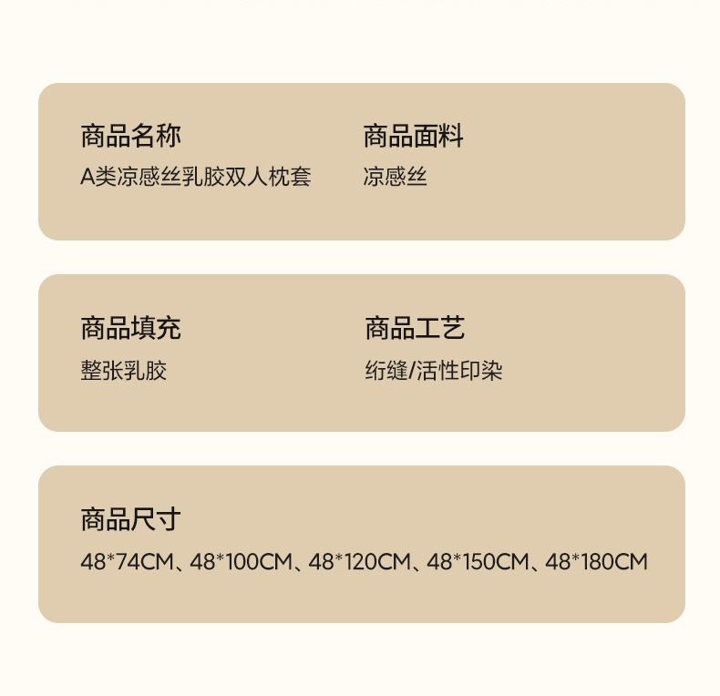 商品名称:雨彤家纺 2025年新款A类乳胶凉感丝双人长枕套 自然之韵