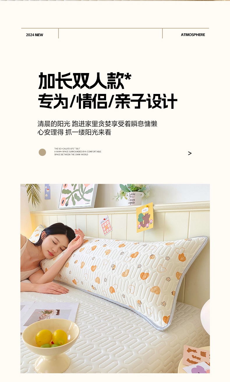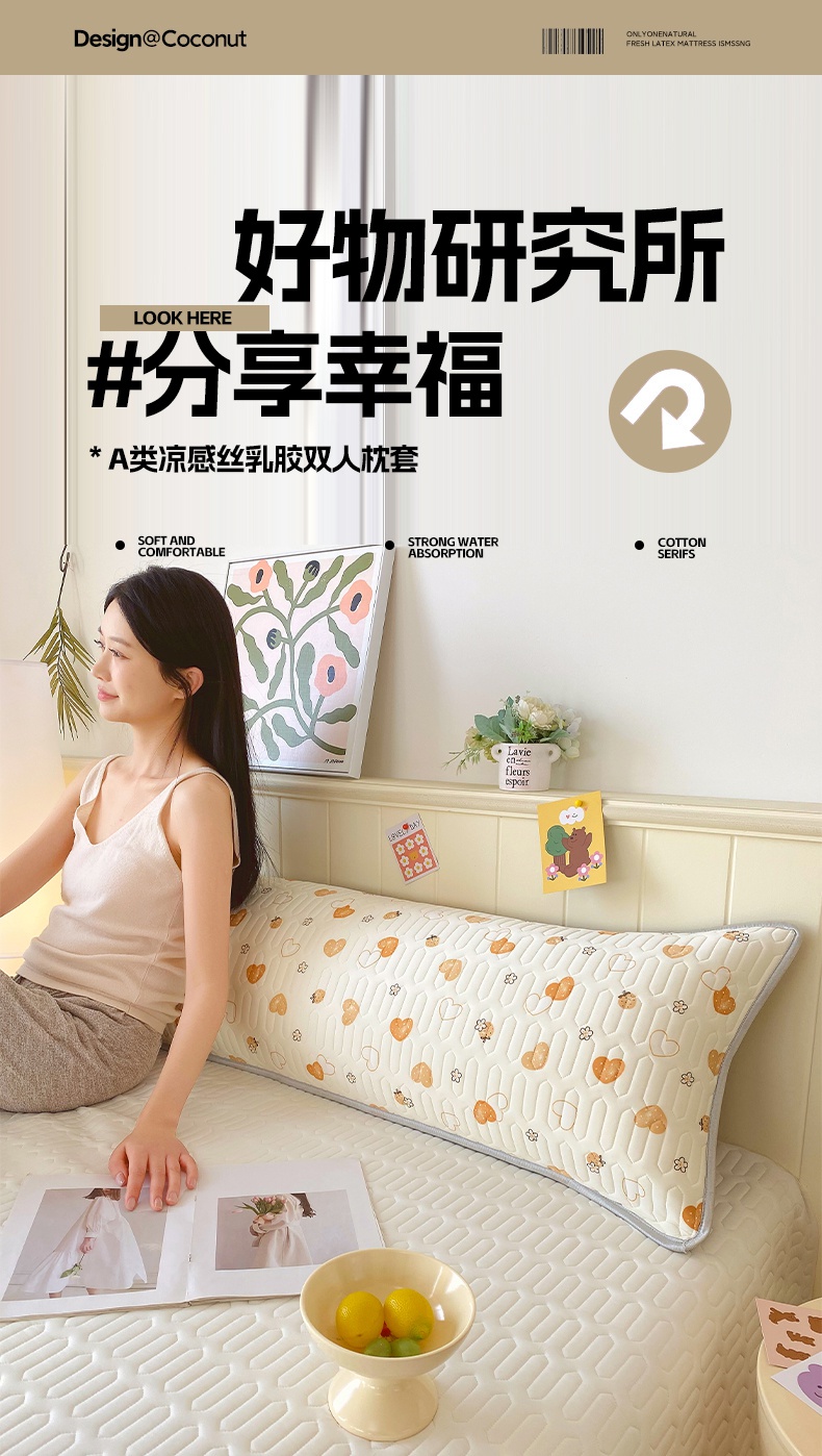雨彤家纺 2025年新款A类乳胶凉感丝双人长枕套 爱意满满