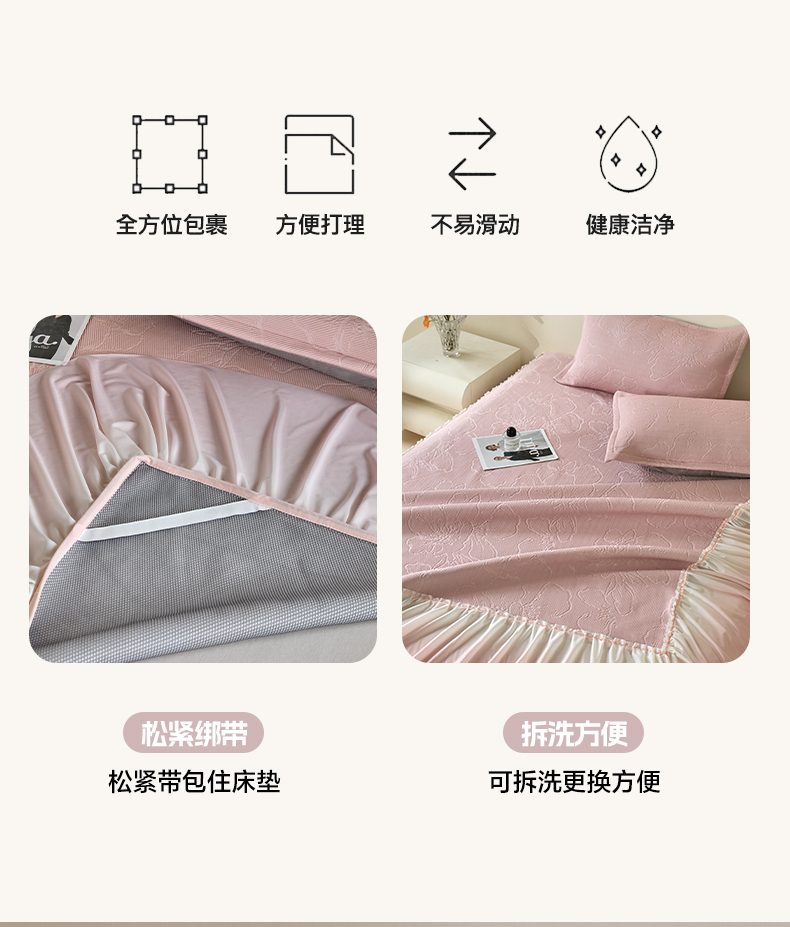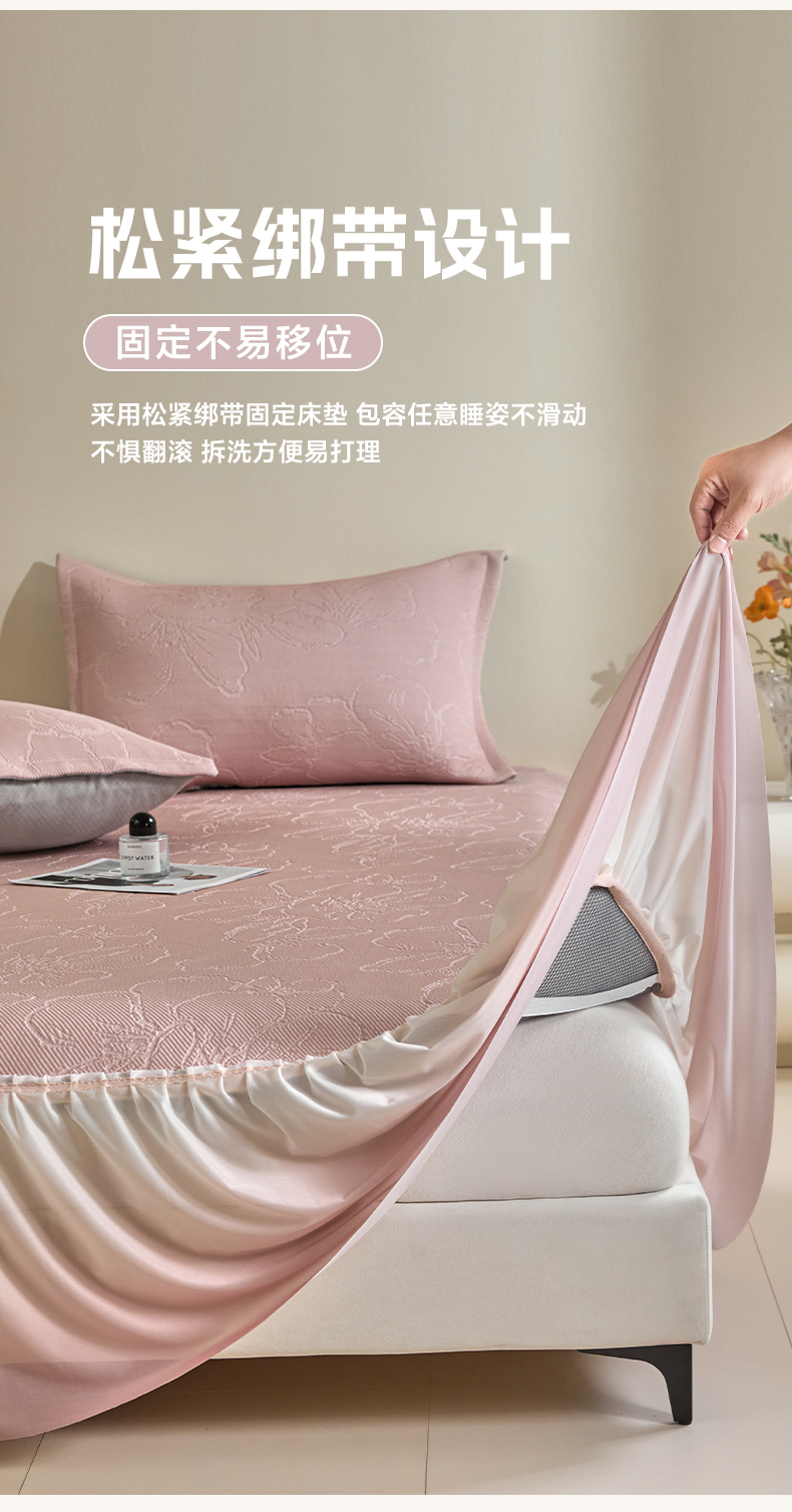 (总)卡初家居2022新款1500D提花床笠款凉席三件套,千鸟格粉,千鸟格咖,千鸟格蓝,千鸟格米,小星星粉,小星星蓝,小熊维尼粉,小熊维尼灰,小熊维尼咖,小熊维尼蓝,小熊维尼绿
