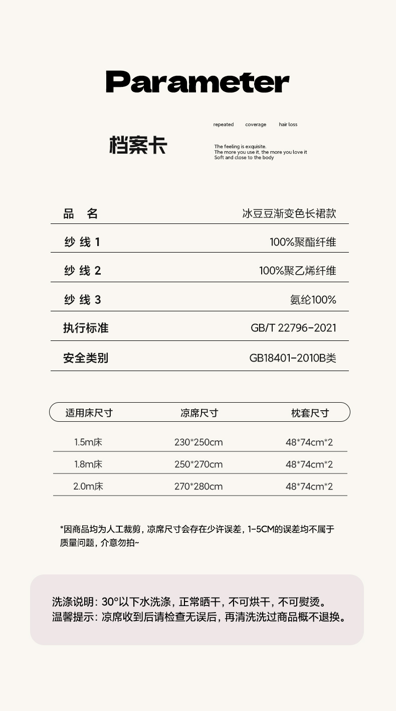 商品名称:(总)卡初家居(原微来) 2025新款乙纶冰豆豆渐变色床裙款凉席席子