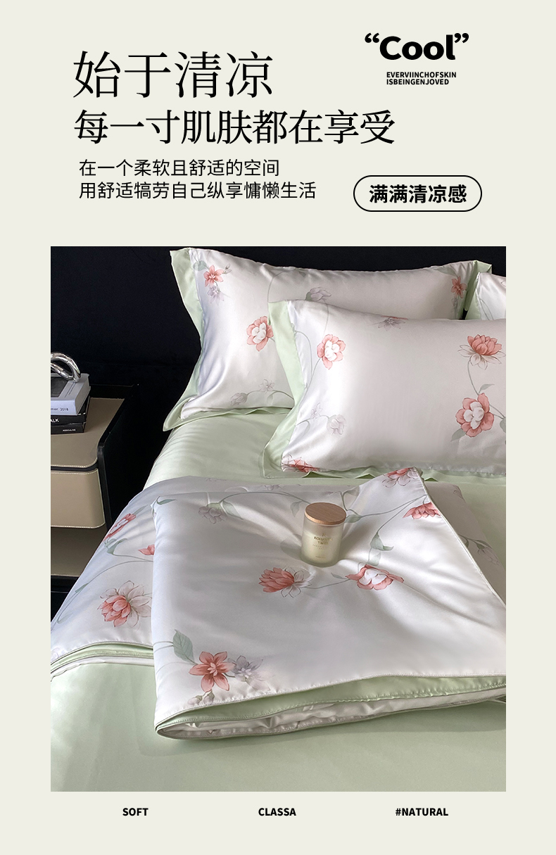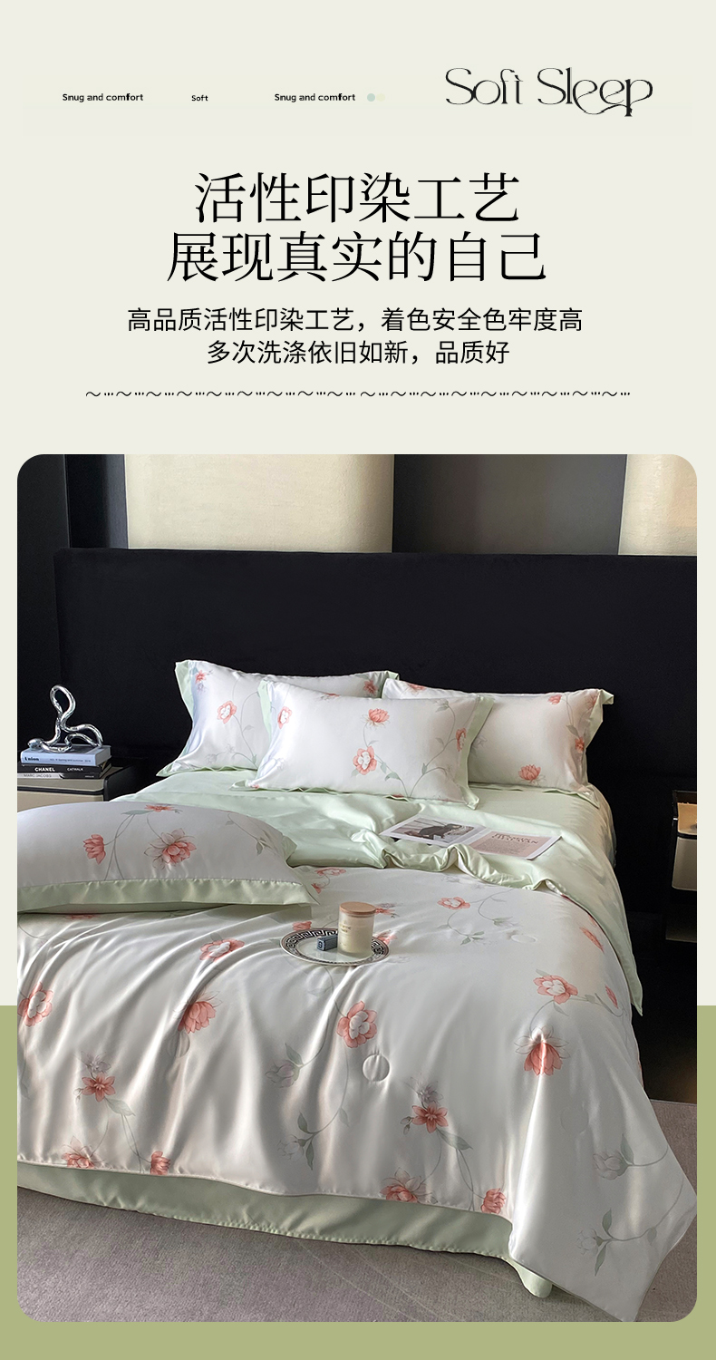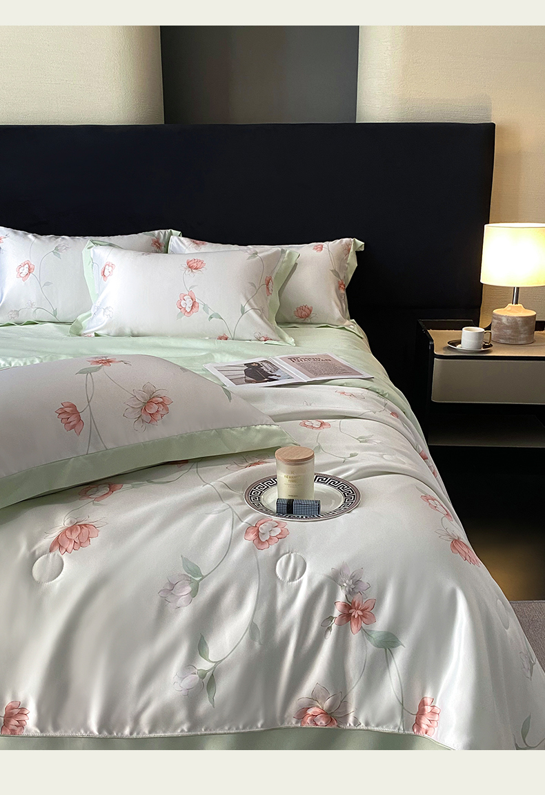 当前位置: 91家纺网 > 商品网购 > 床品套件 > 四件套 > 夏被四件套 > 优悦生活馆 2025新款顺滑冰丝夏被四件套-轻梦轻语 轻语-绿
