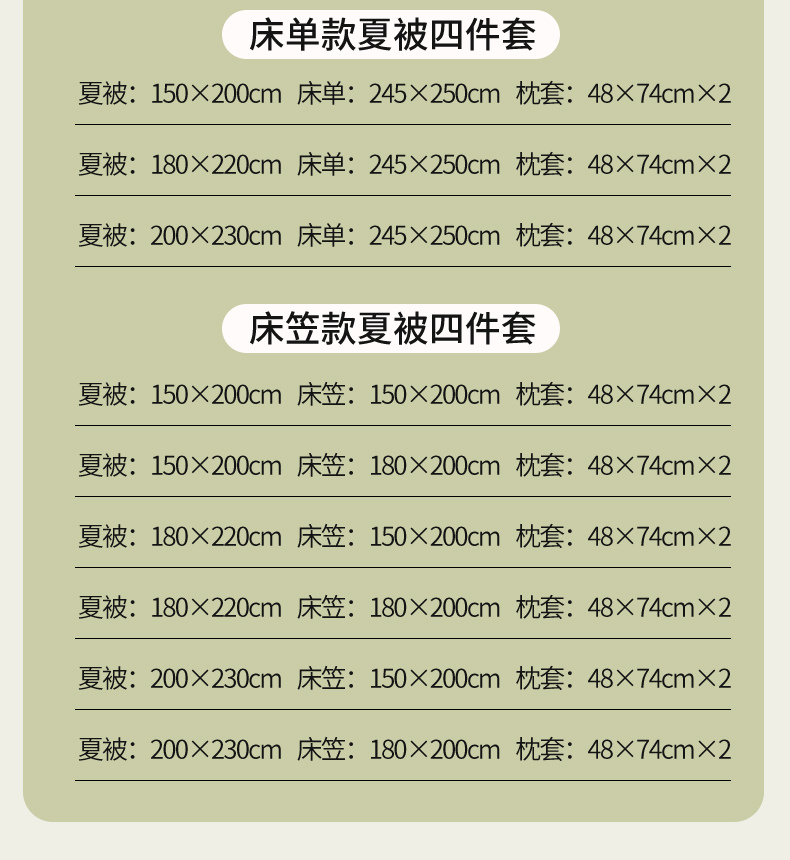 180*220cm夏被四件套 | ¥95.00 |