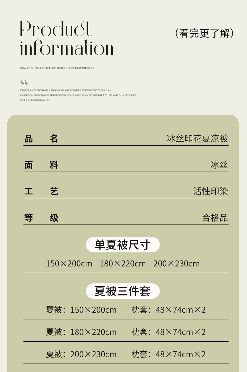 200*230cm夏被三件套 | ¥80.00 |