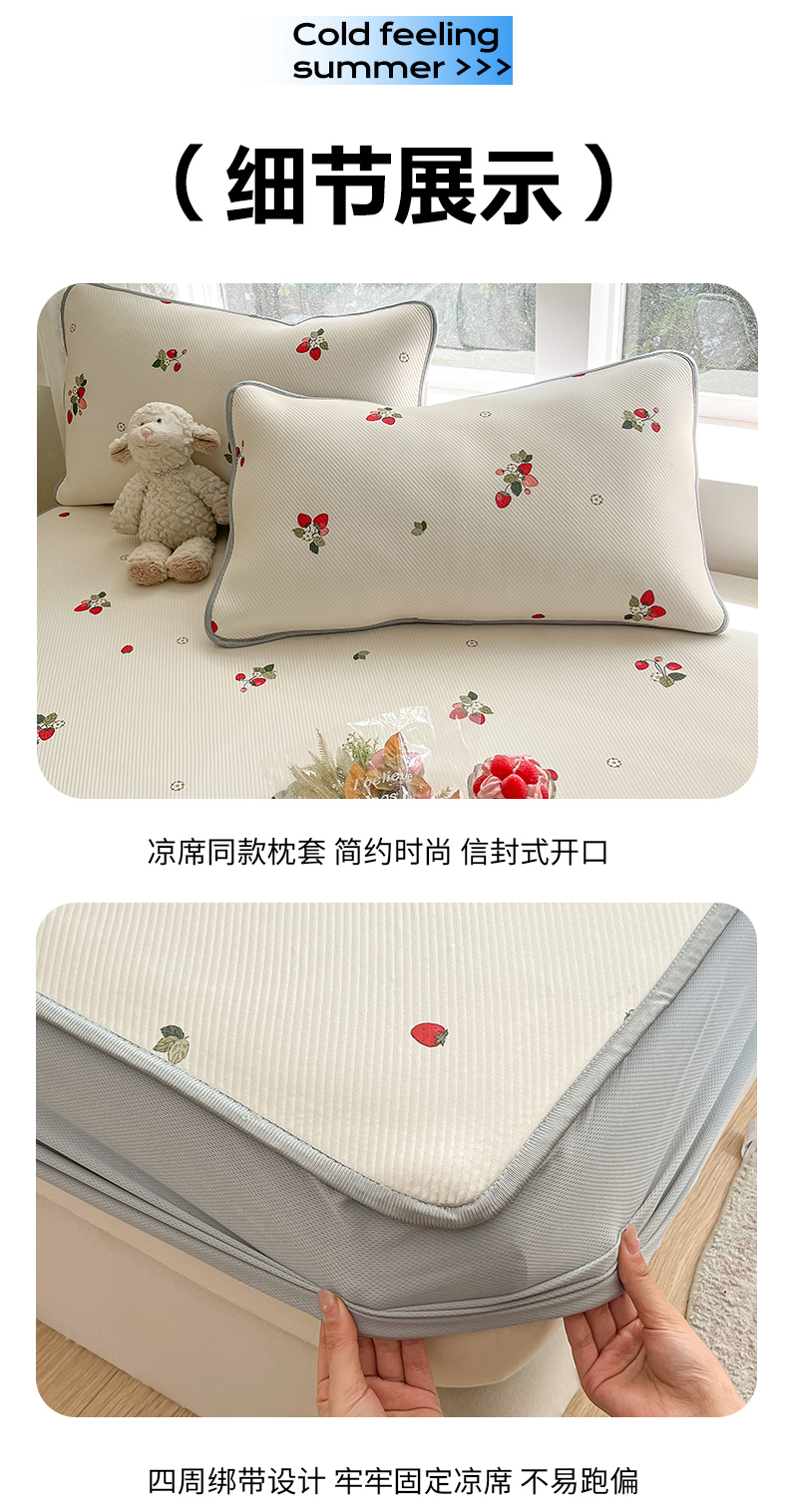 商品名称:星座家纺 2025新款复合提花凉感丝凉席三件套床笠款 奶油草莓-床笠款
