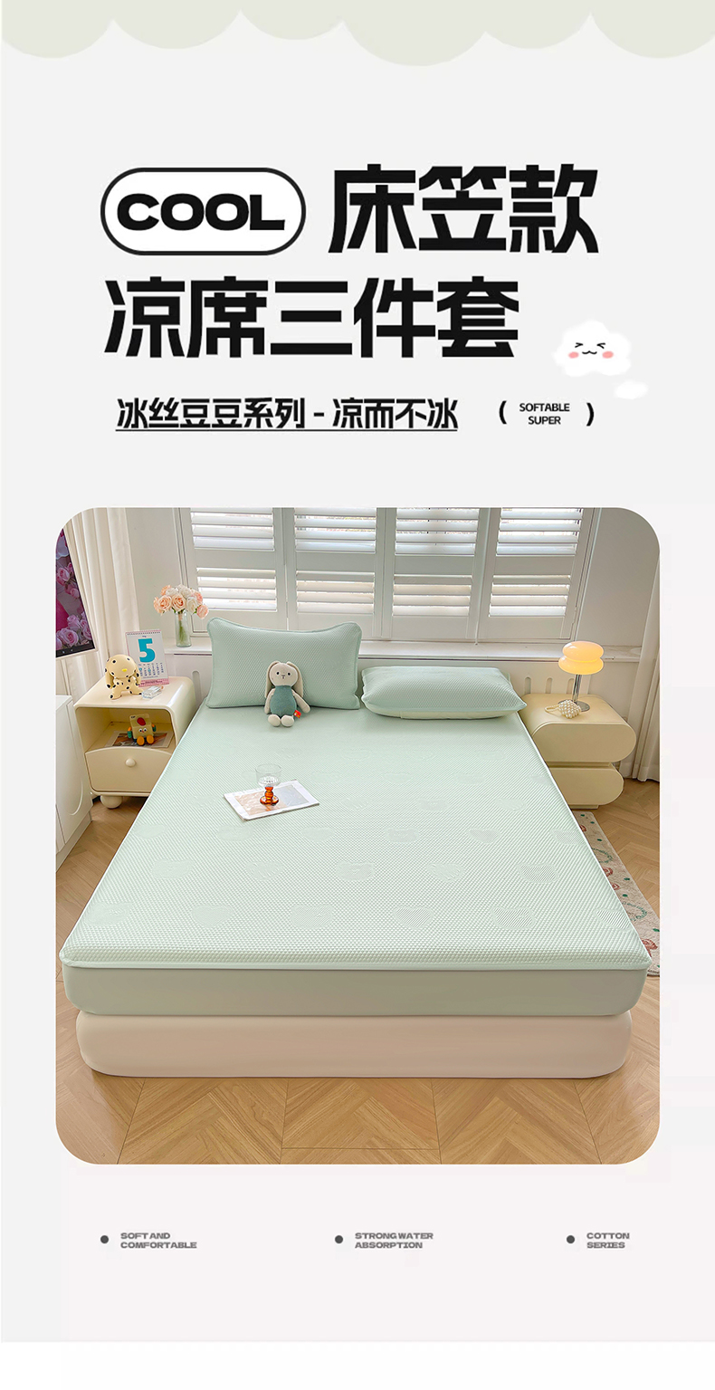 (总)德比尔斯 2025新款凉感冰豆豆小冰熊凉席系列-床笠款