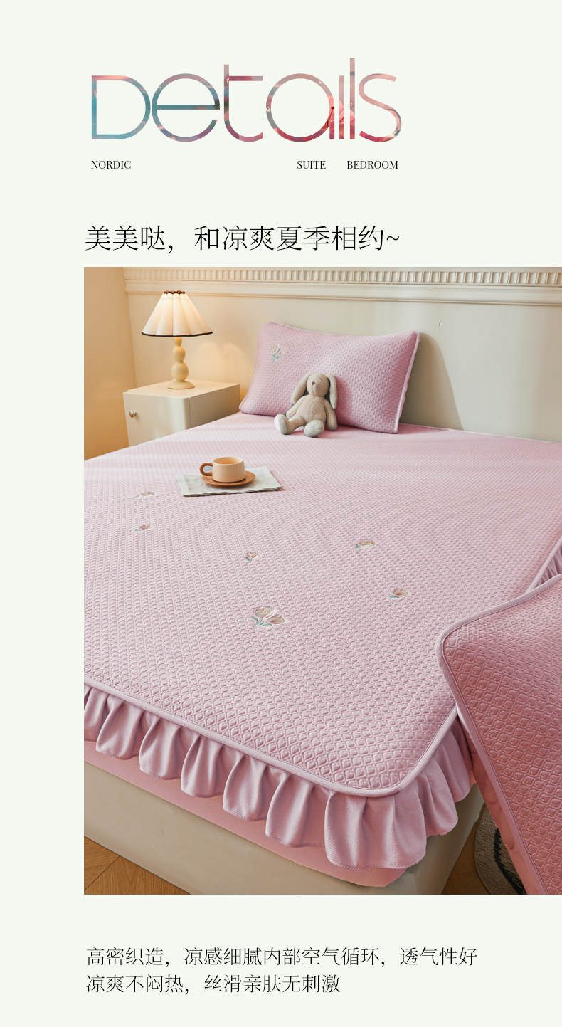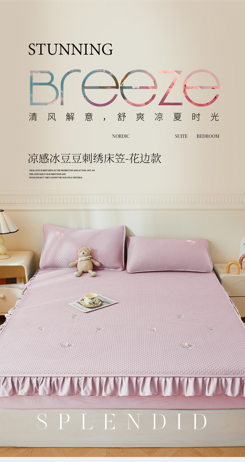 (总)爱思凯家纺 2025新款凉感冰豆豆凉席床笠款-花边款