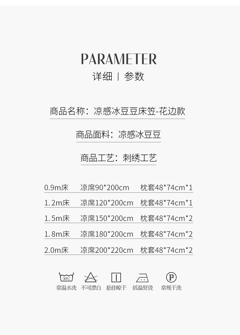 商品名称:(总)爱思凯家纺 2025新款凉感冰豆豆凉席床笠款-花边款