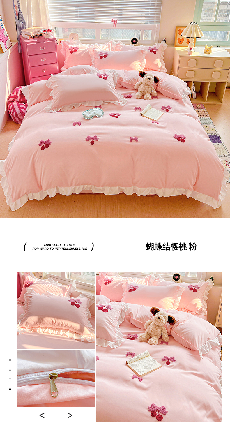 (总)雨菲家纺 2025新款水洗棉毛巾绣萌趣花边四件套--爱心猫蝴蝶结樱桃,爱心猫 粉紫,爱心猫 粉玉,爱心猫 奶黄粉,爱心猫 浅黄,蝴蝶结樱桃 粉,蝴蝶结樱桃 红